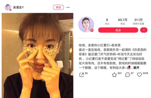吴谨言拍《延禧攻略》时,在化妆师的推荐下,用一次就上瘾了,化妆包里总会放上几片眼膜,走哪贴到哪,据说他们剧组很多人都在用~