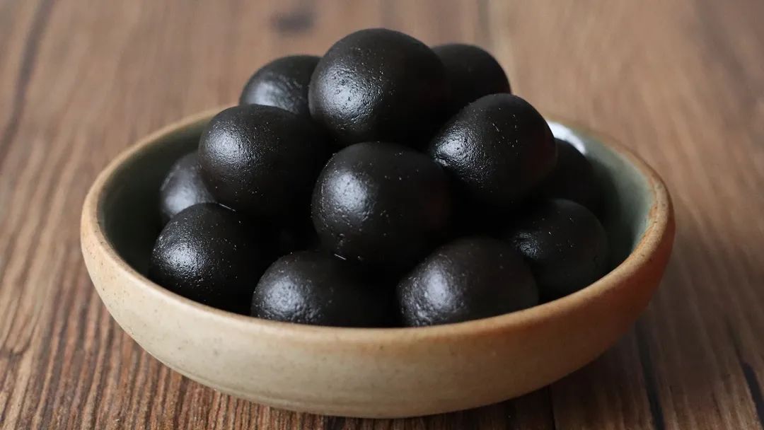 磨去外皮,延古法工艺,九次高温蒸制,九次炙阳曝晒,化入金花蜜炼,制成颗颗色如棕玉、咀嚼似空的黑芝麻丸。