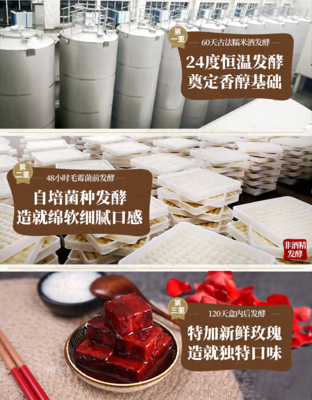 第二重,经过自己培育的毛霉菌发酵48小时,隔绝杂菌,造就绵软细腻的口感。
