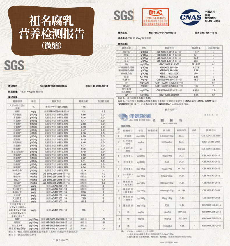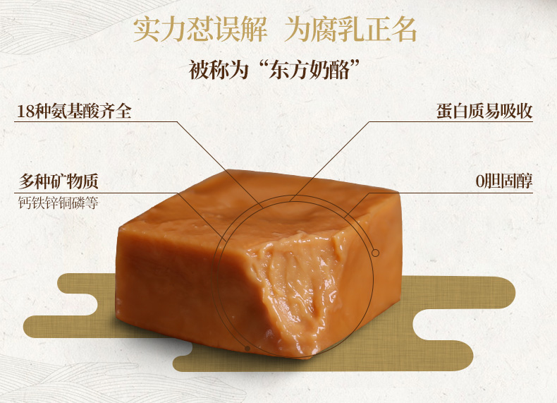 祖名鲜腐乳富含多种矿物质和18种氨基酸,0胆固醇,蛋白质也很容易吸收,是名副其实的健康食品哦!还有“东方奶酪”的美名呢!