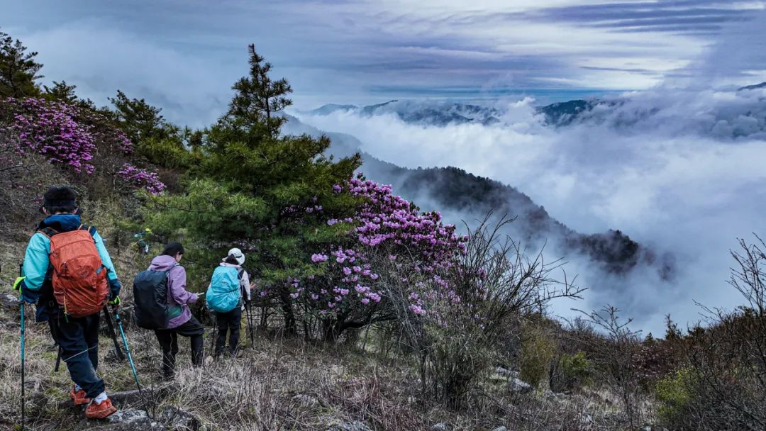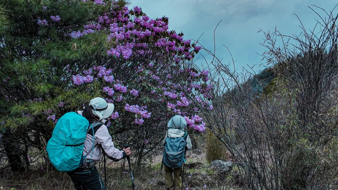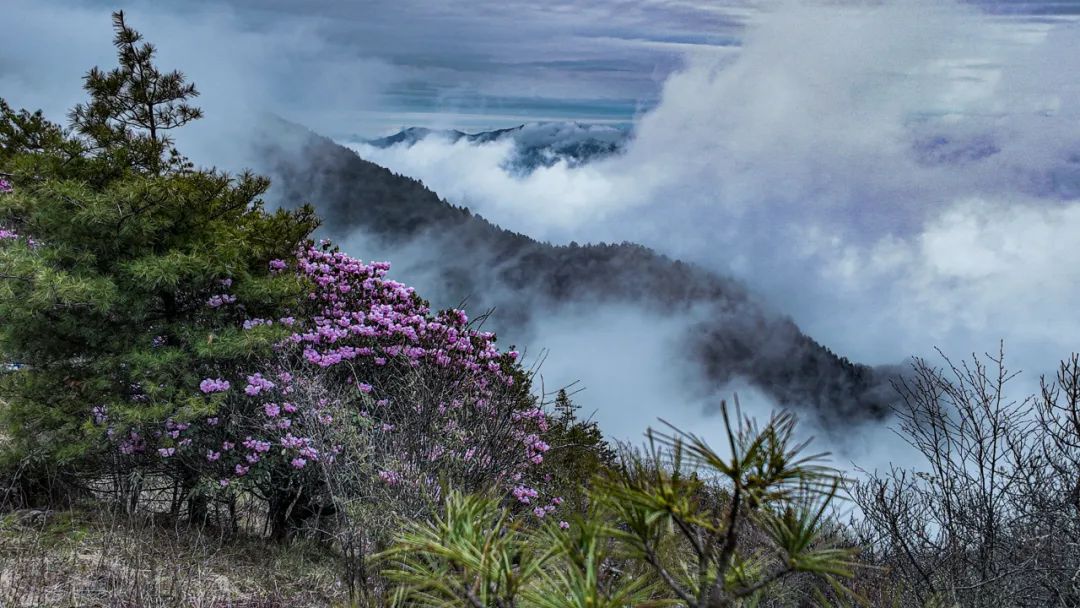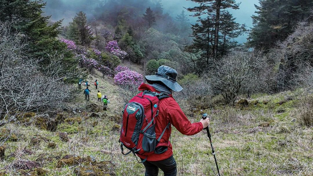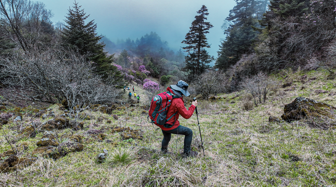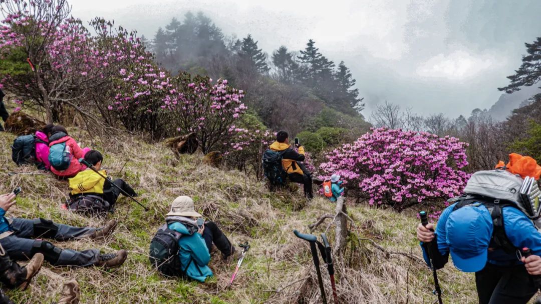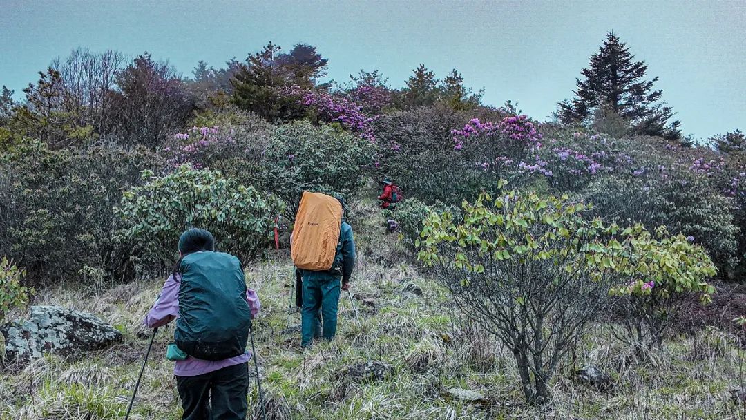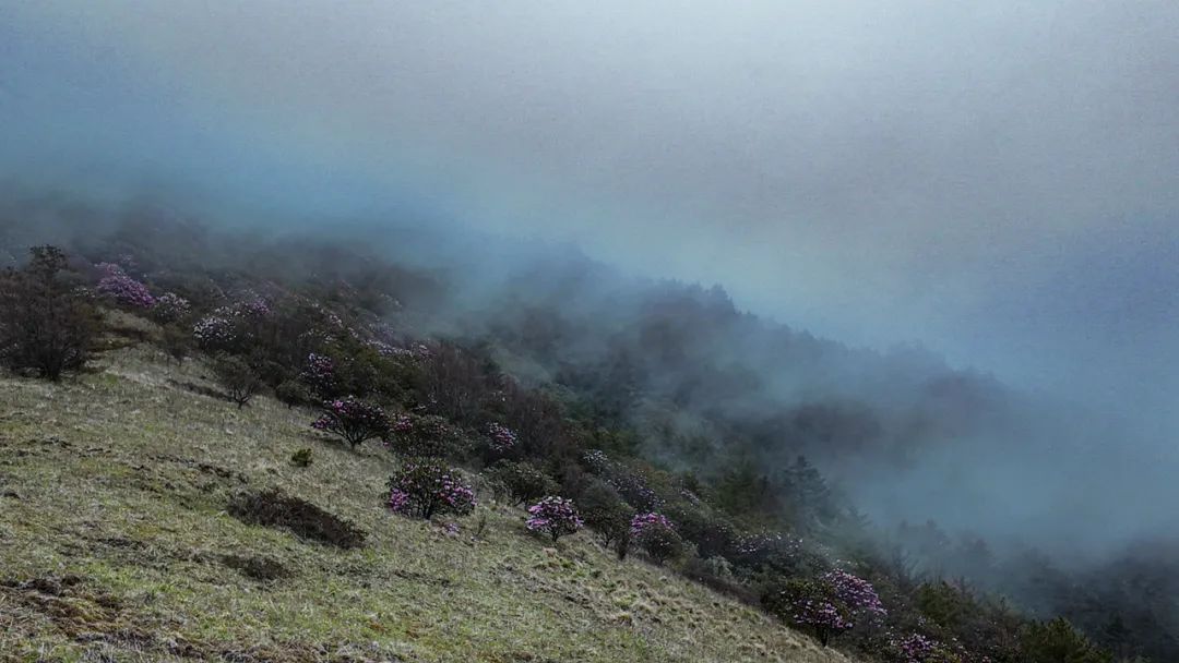 走进高山草甸,也就正式步入了神农架的高山杜鹃林,前一天看到的窸窸窣窣的杜鹃花乃是前菜,今天才是重头戏。