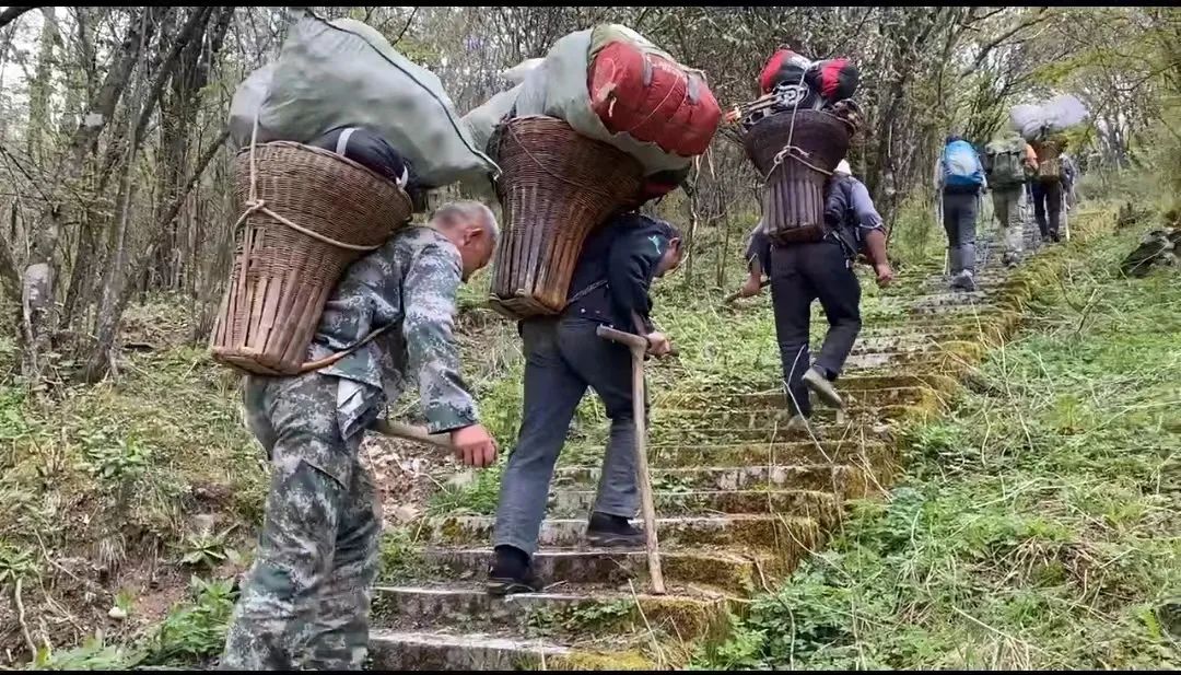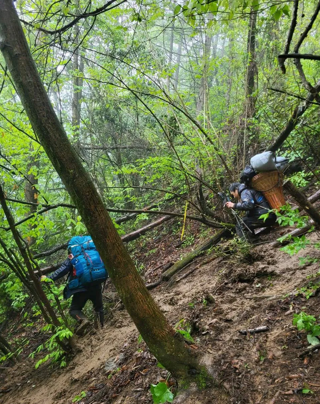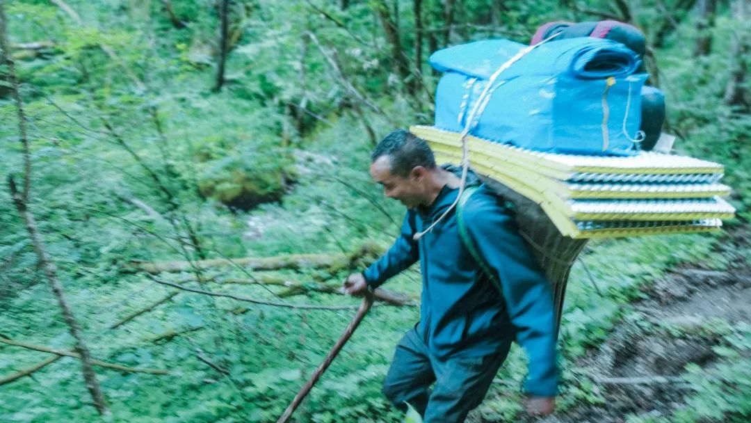 解决了吃饭的问题,还有喝水的难关,不允许生火,那就只能增派背夫扛着液化气进山烧火做饭咯,可做完饭还要烧水,适逢五一节假日高峰期,这对后勤团队无疑是巨大的近乎不可能完成的挑战,毕竟在神农架林区,没有马帮牦牛后勤车,一切都得靠人力搬运。
