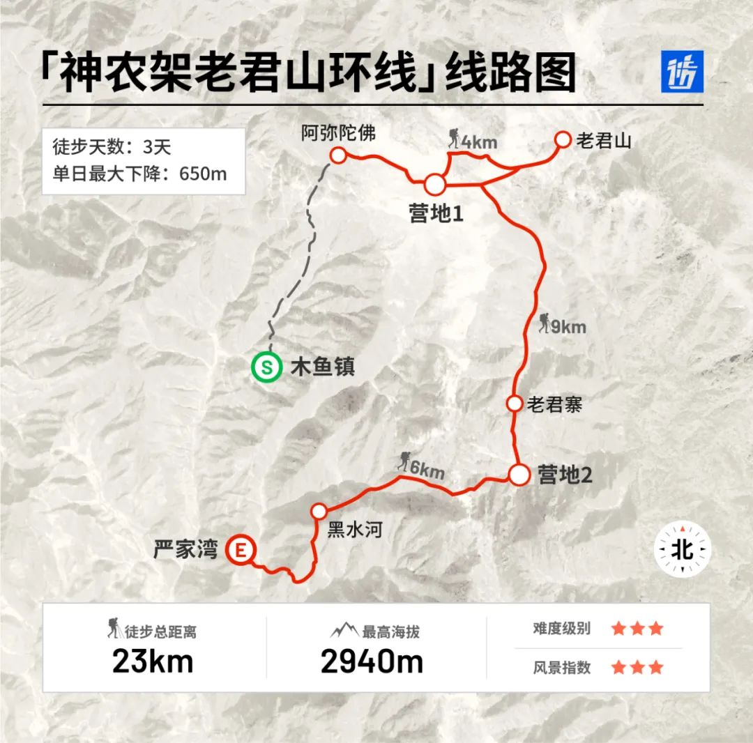 神农架林区很大,大到为它专门建立一个行政区划,林区划分为东西两片,西片为开发成熟的风景区,例如大家熟悉的神农顶、大九湖、官门山等等,东片则为真正意义上的原始森林核心无人区,主峰老君山海拔 2936米,对于户外人来说,深入无人区才是真正的挑战和享受。