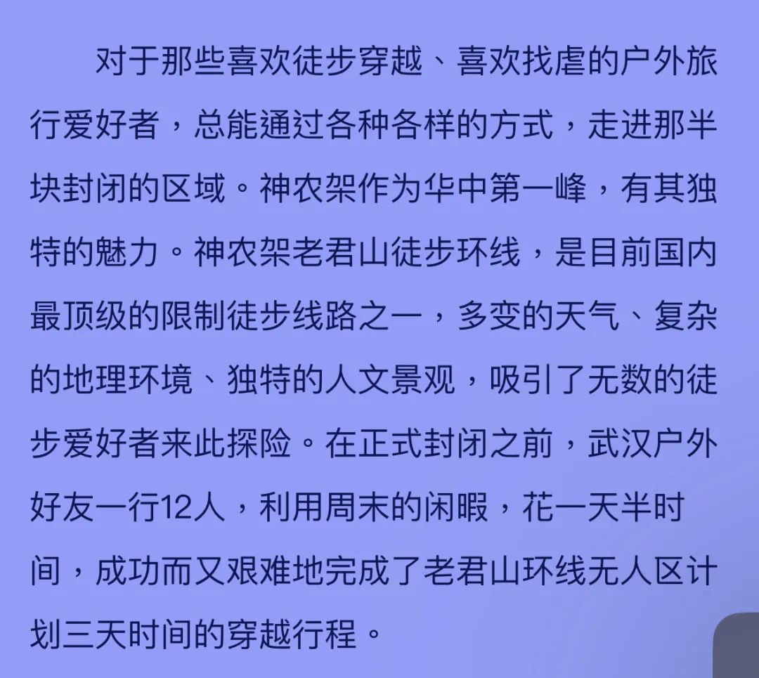 在网上搜索“神农架 老君山 徒步”等关键词,出现的大多都是一些 2018年之前的古早游记,伴随着高糊的图,重装、蚂蝗、自虐是它的代名词......地位是有的,毕竟曾经是“中国十大经典徒步路线”,被无数户外人拥趸(过)。