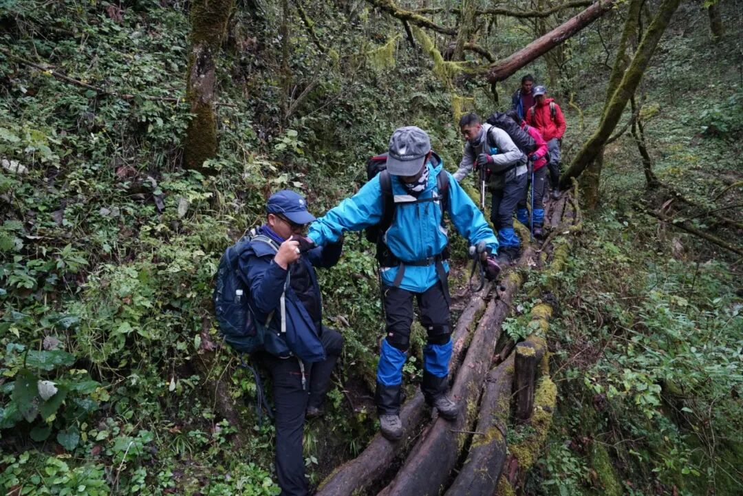 这天从营地海拔 2300 米上升至 2960 米,再一路下降到 1900 米,是穿越强度最大的一天,所幸没下雨,所有队员顺利于天黑前抵达位于河谷的营地。