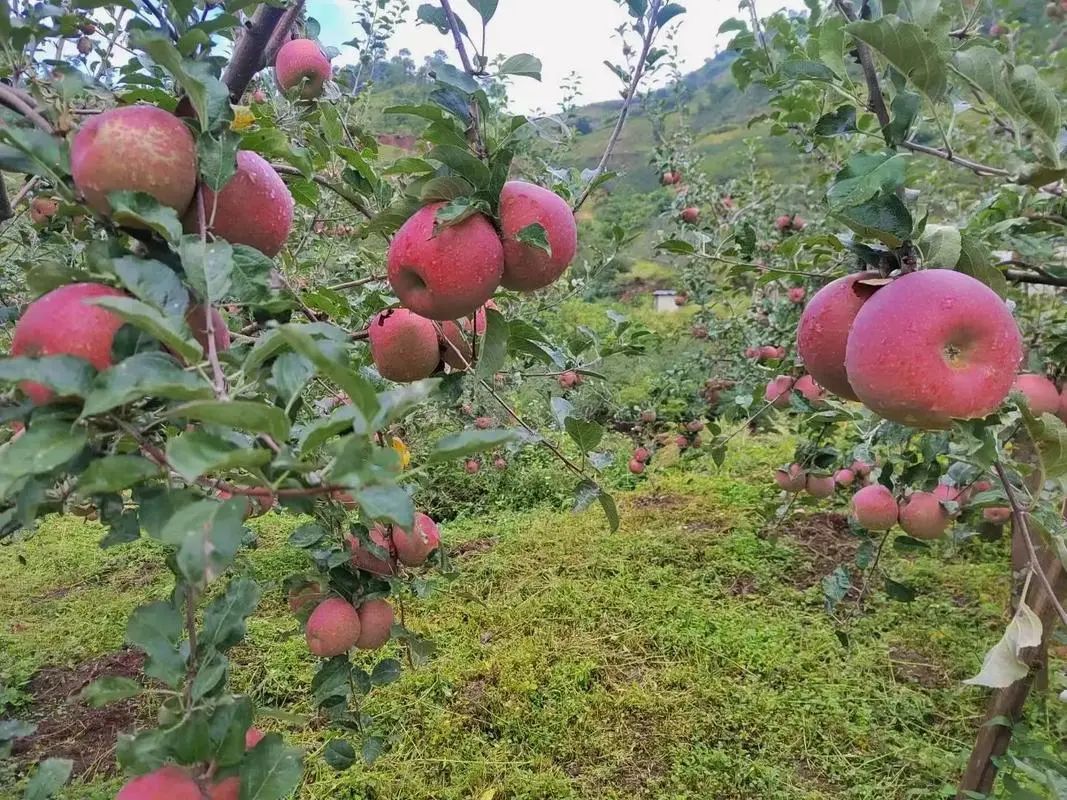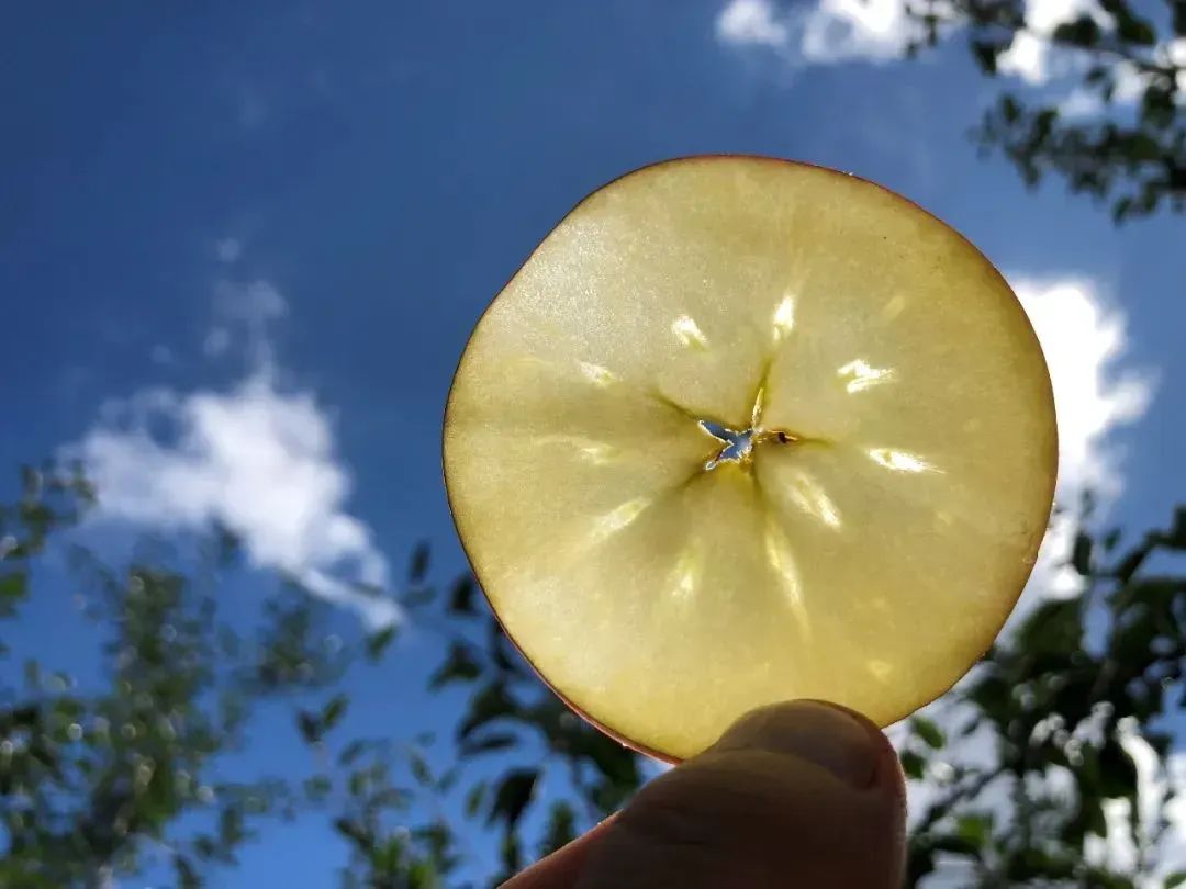 这里昼夜温差大,日照时间长,所以苹果生长不需要套袋,糖分沉淀多,也会凝结成糖心,口感甜脆苹果