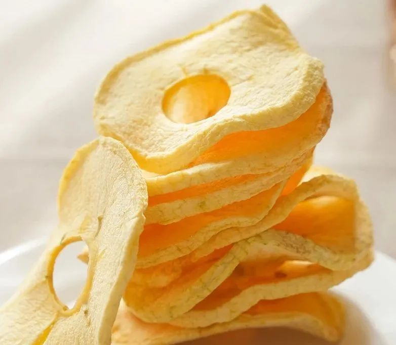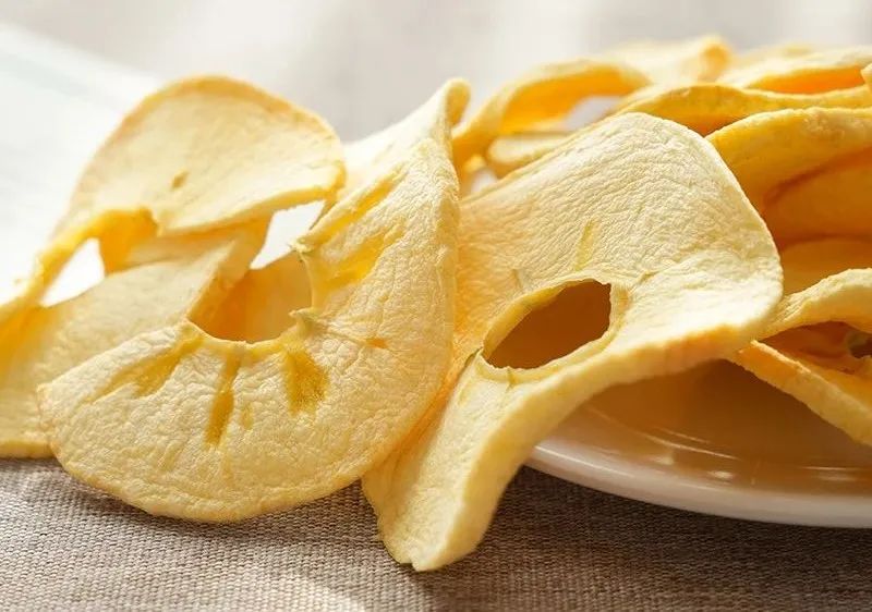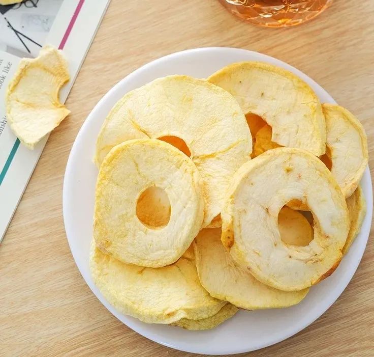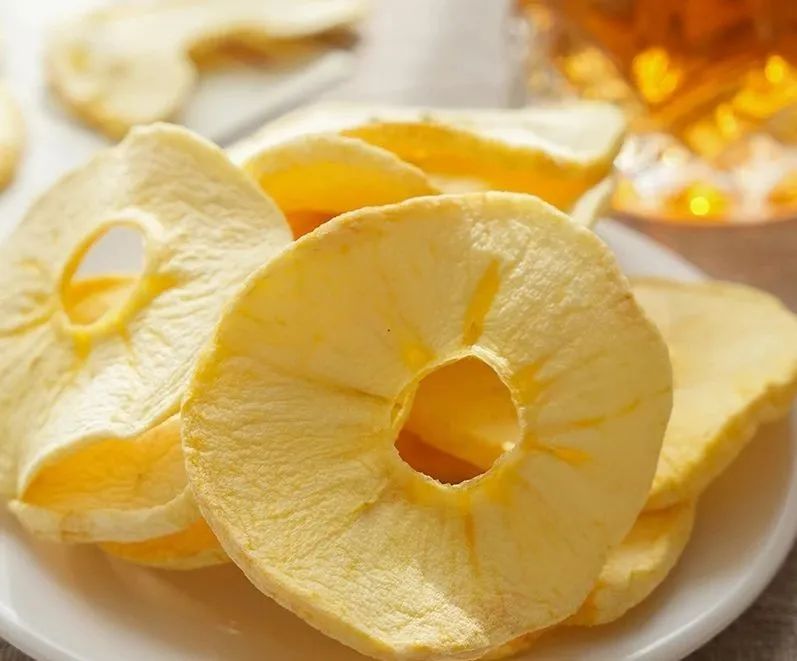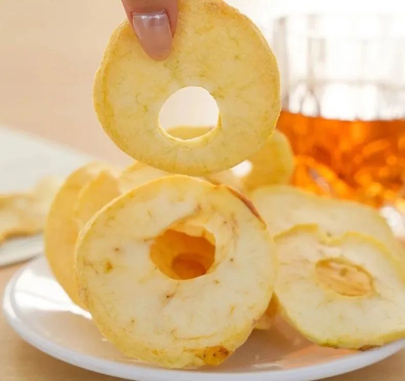 所以通过低温烘干水分后的苹果干,保留甘酸生津之性,酸甜可口,更适合养脾胃;即使多吃一些,也不会肚子不适;