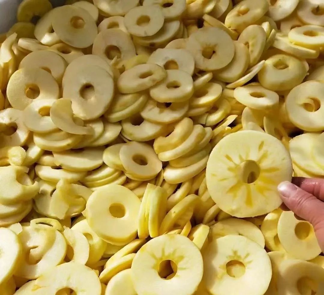 鲜果采摘后,去皮去核,切成整片苹果圈~