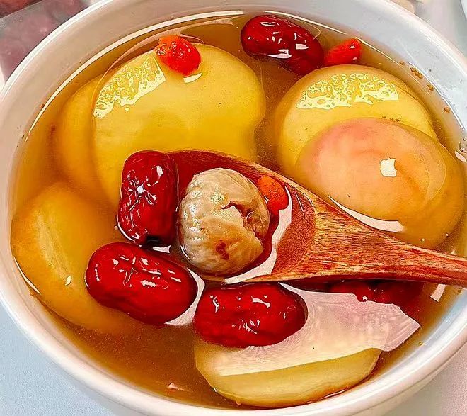 冬季寒湿困脾,将苹果干与红枣、桂圆一同熬煮,温中散寒,提升气血循环。