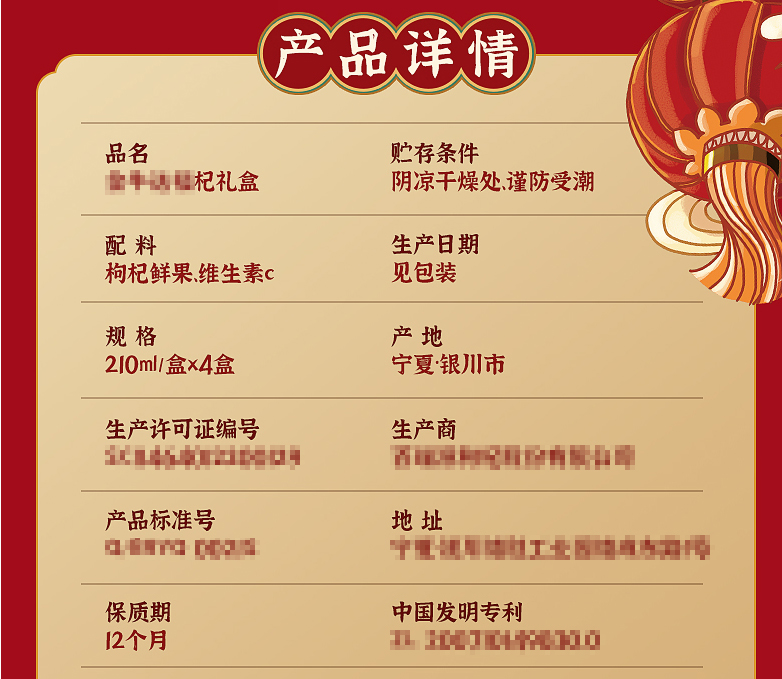 大家先来看看某平台上销量前几的枸杞原浆配料吧。