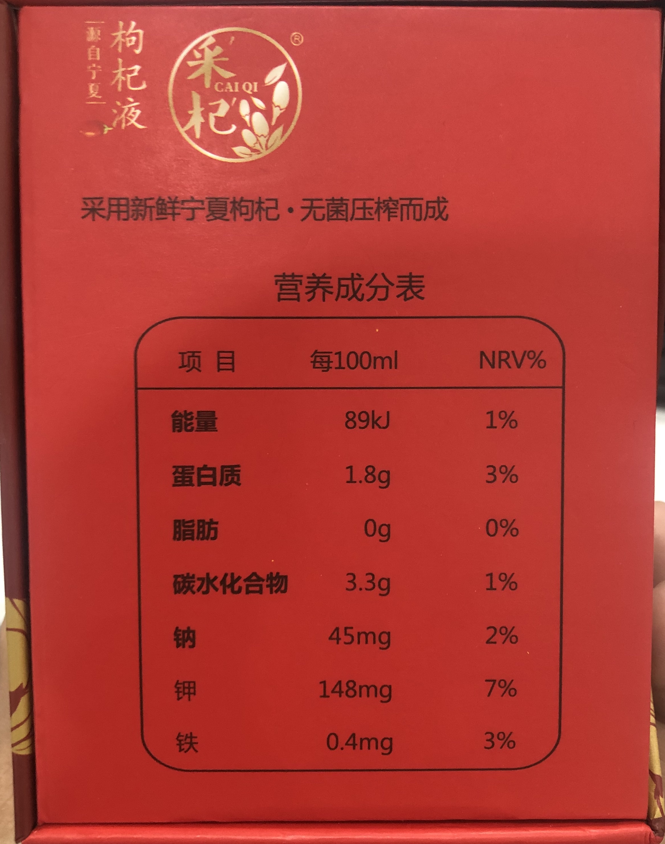 如上图所示,枸杞液的配料表只有枸杞清汁。枸杞液与枸杞原浆的不同之一是无果肉。无果肉的汁液比果浆少了数倍糖分,含糖量自然没有果浆那么高,在口感上没那么厚甜却十分温润,在口舌间回味时有着淡淡的枸杞香,有自然的香甜感。那枸杞液是怎么做出来的呢?