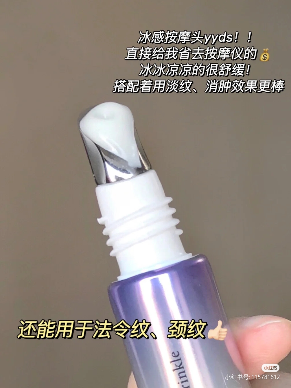 ✅用按摩头先逆着眼纹方向按摩,再用指腹按摩至吸收