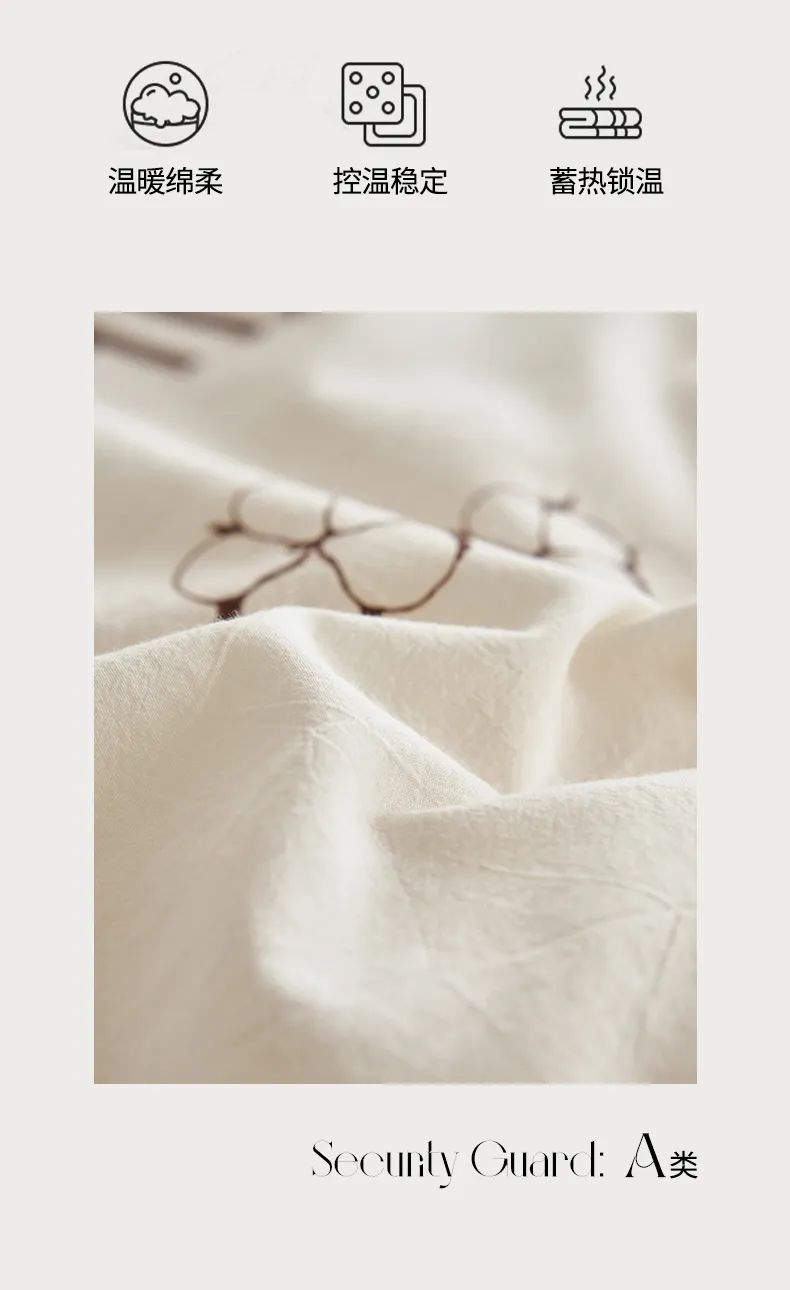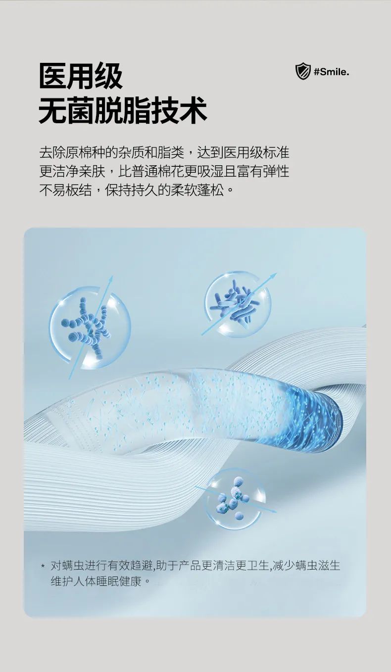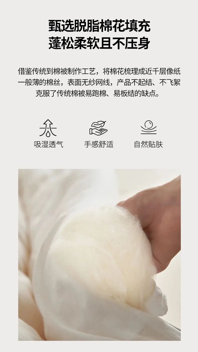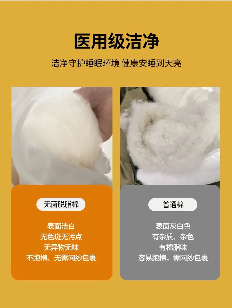 医用级别的脱脂棉,借鉴传统棉被制作工艺,手感舒适,更亲肤。