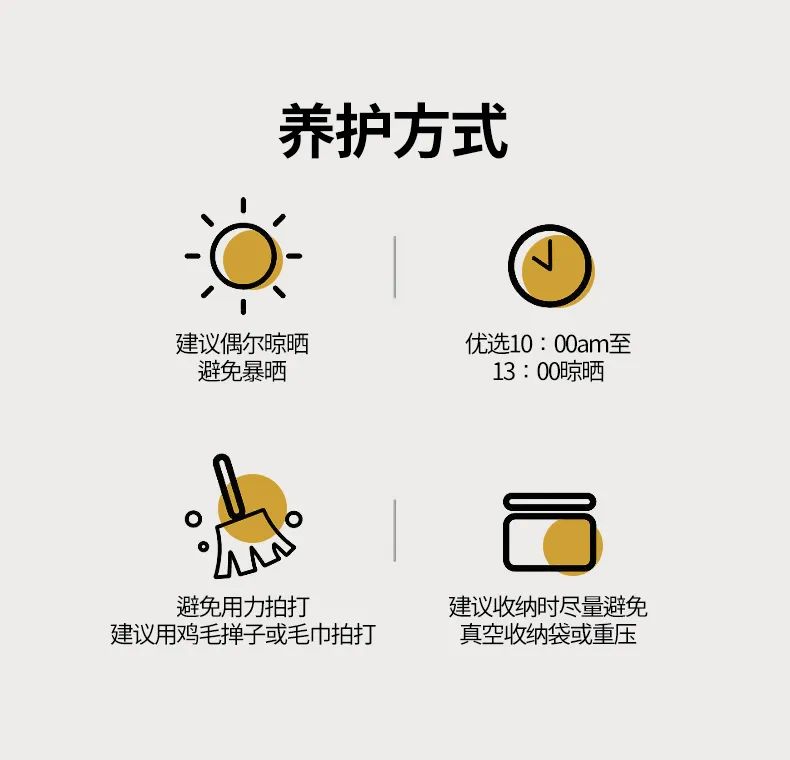 适度晾晒、拍打可以保持蓬松柔软,避免暴晒。一款好的棉被,保养得当用个十年八年完全没问题!