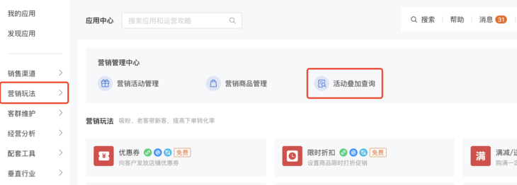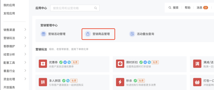 1. 功能入口:应用-营销玩法-营销活动管理