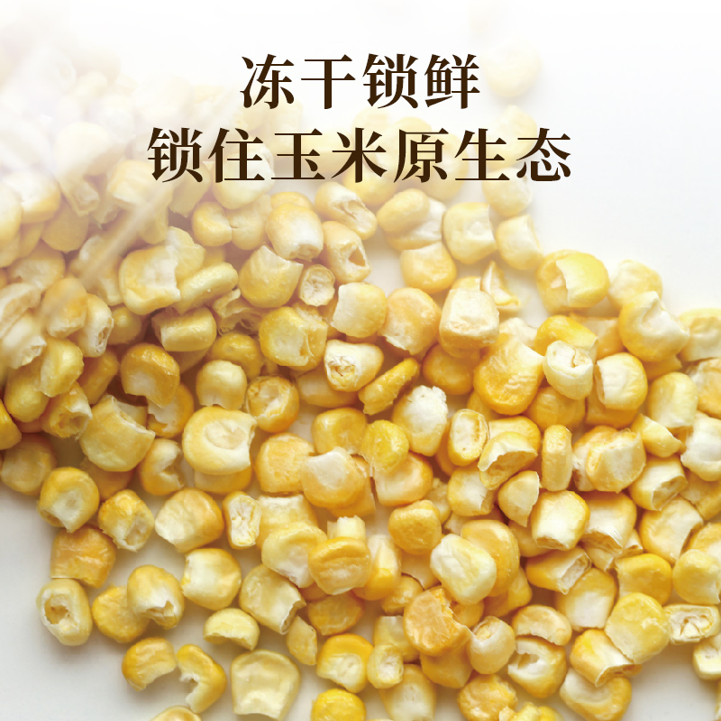 注意:不适合小宝宝干吃,玉米冻干非常轻,可能会吸入气管!!一定在泡在稀饭或者牛奶中哦