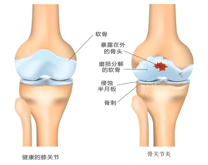 最终会发生关节软骨退变、半月板损伤、骨质暴露、甚至骨刺等问题
