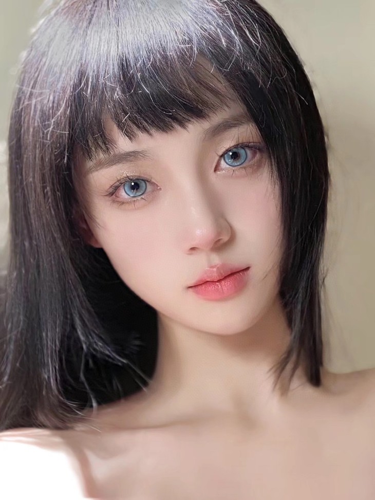 无黑边冰透蓝混血感十足~