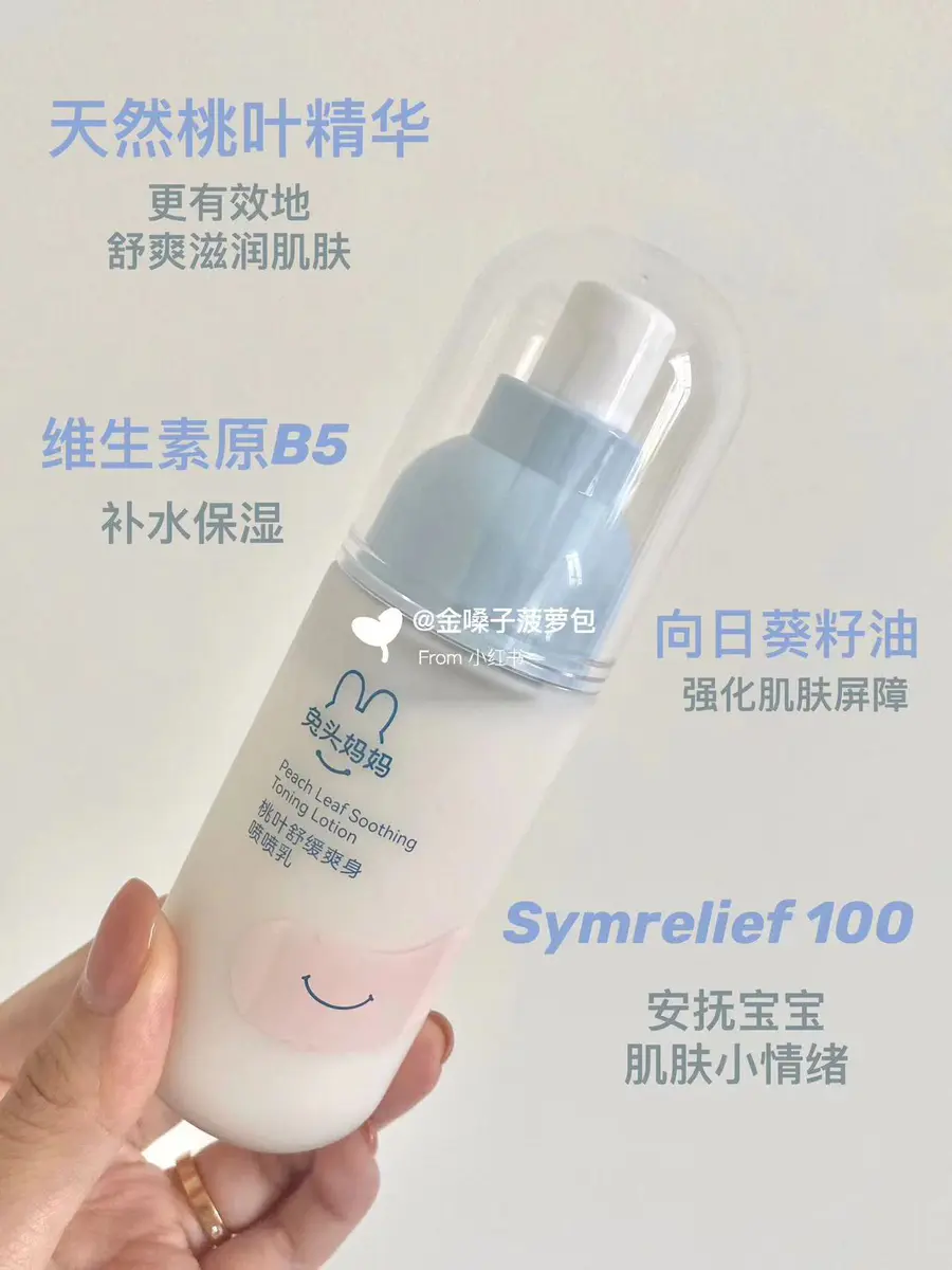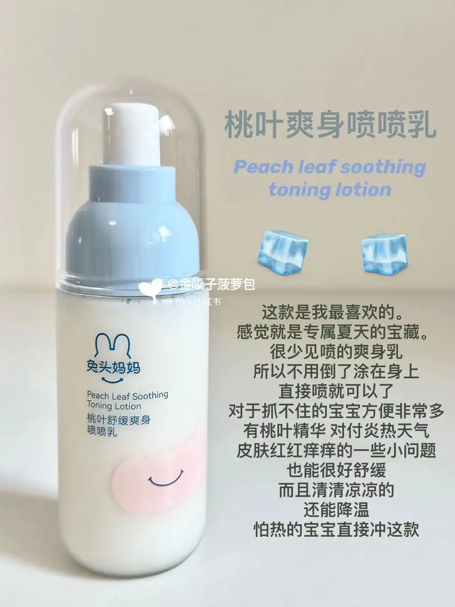 有桃叶精华,对付炎热天气,皮肤红红痒痒的一些小问题也能很好舒缓。而且喷上就是清清凉凉的还能降温。容易淹脖子的宝宝直接冲!