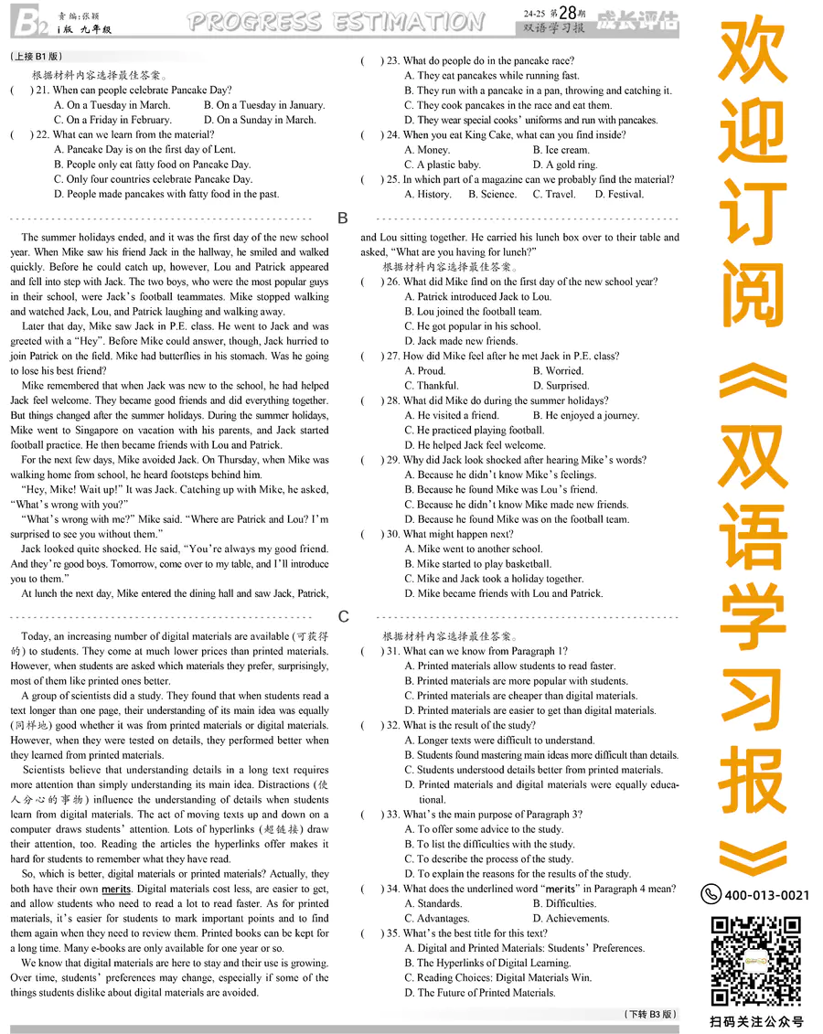 《双语学习报》九年级 i版 第28期