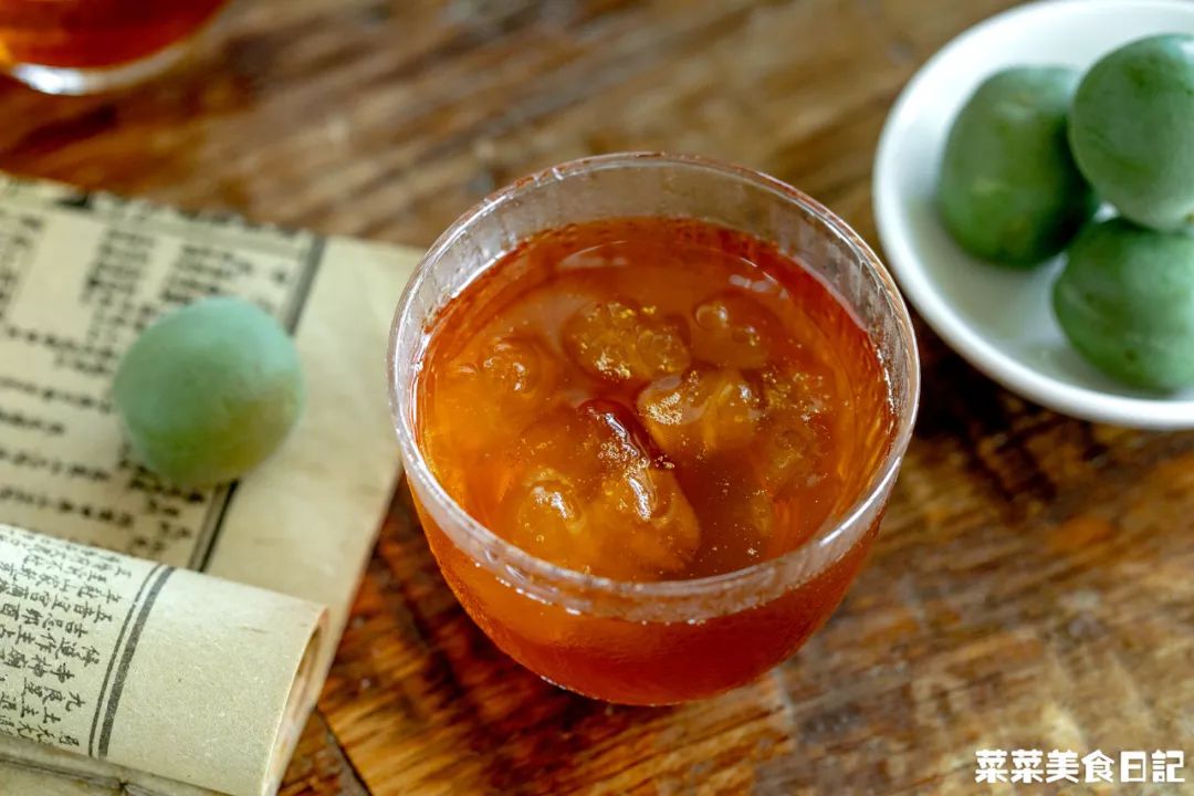 自酿梅子酒浓度高,适合加冰稀释着喝。