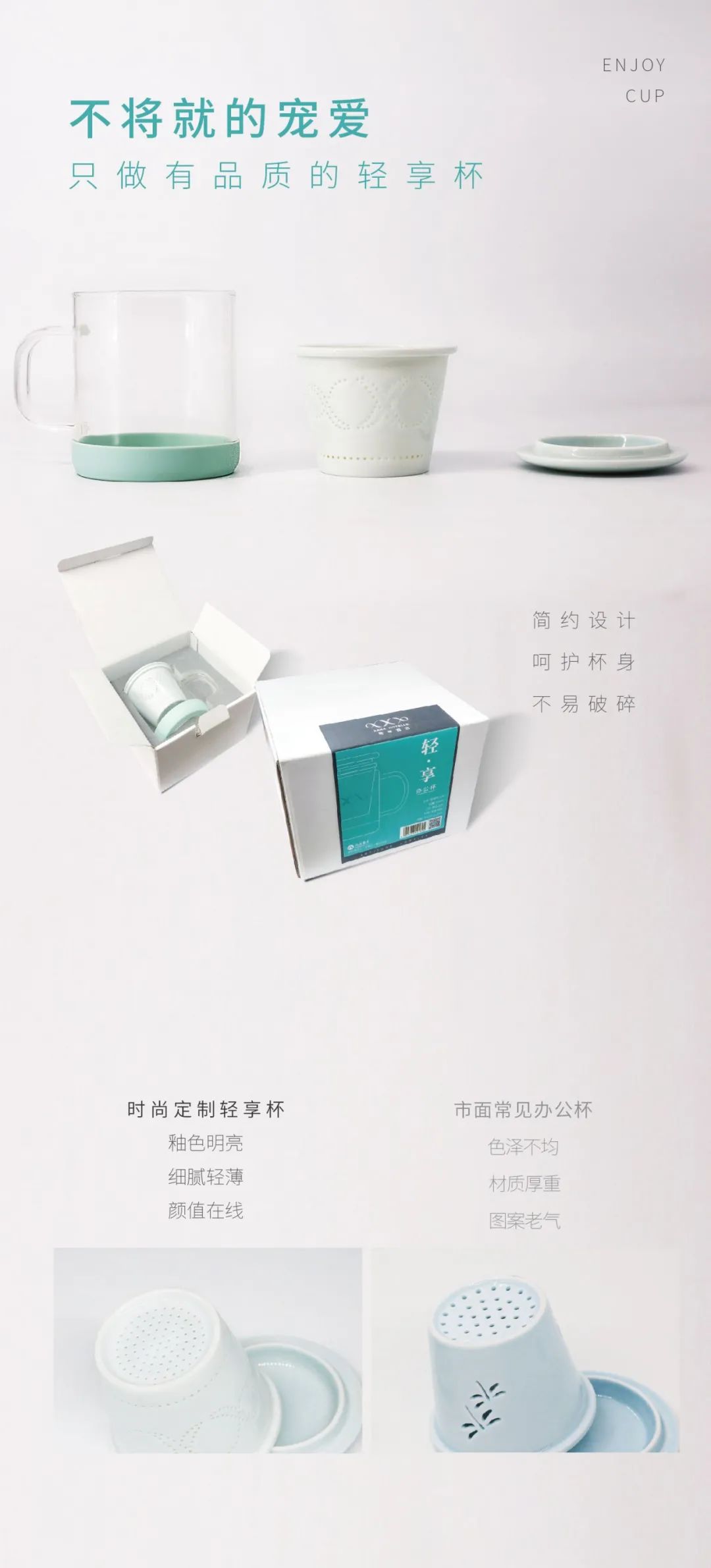 这款花茶杯结合了优质德化瓷和高硼硅玻璃的优势,光是设计到从品,足足历经了半年的时间。