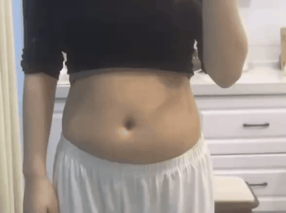 现在是夏天,穿的又比较薄,走路坐着都得吊着口气缩肚子,不然就会偷偷跑出来!