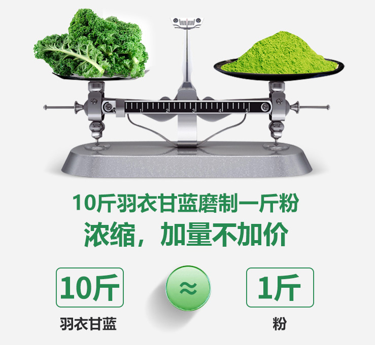 差不多10斤的羽衣甘蓝,才能出1斤的羽衣甘蓝粉。