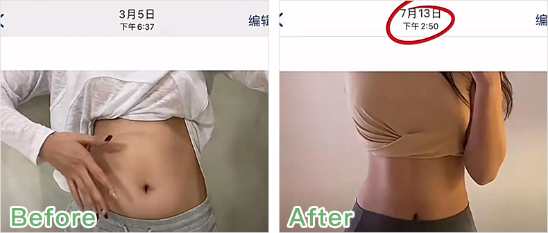 肚子上的小肚腩瘪了,腰线也稍微出来了。