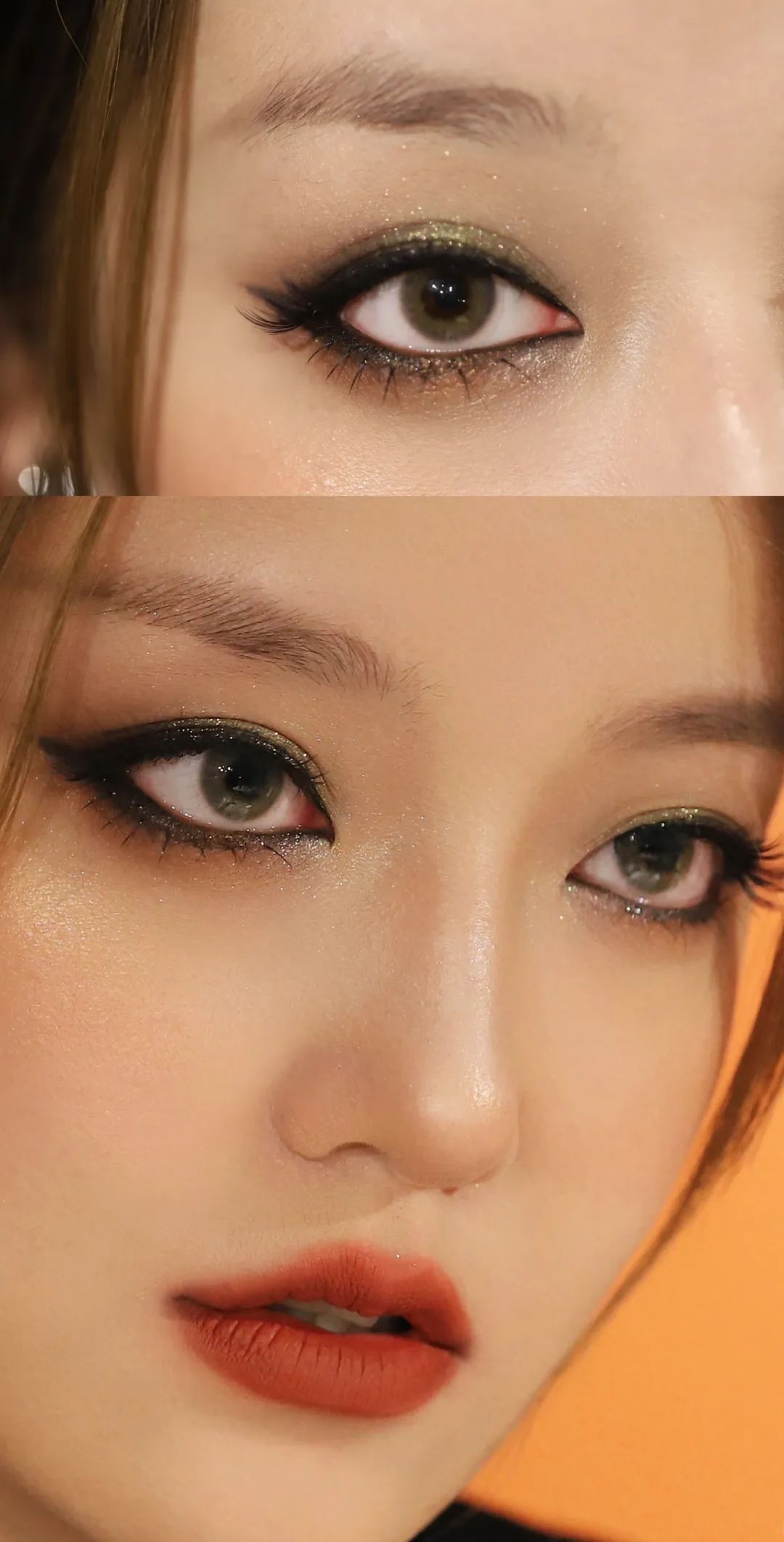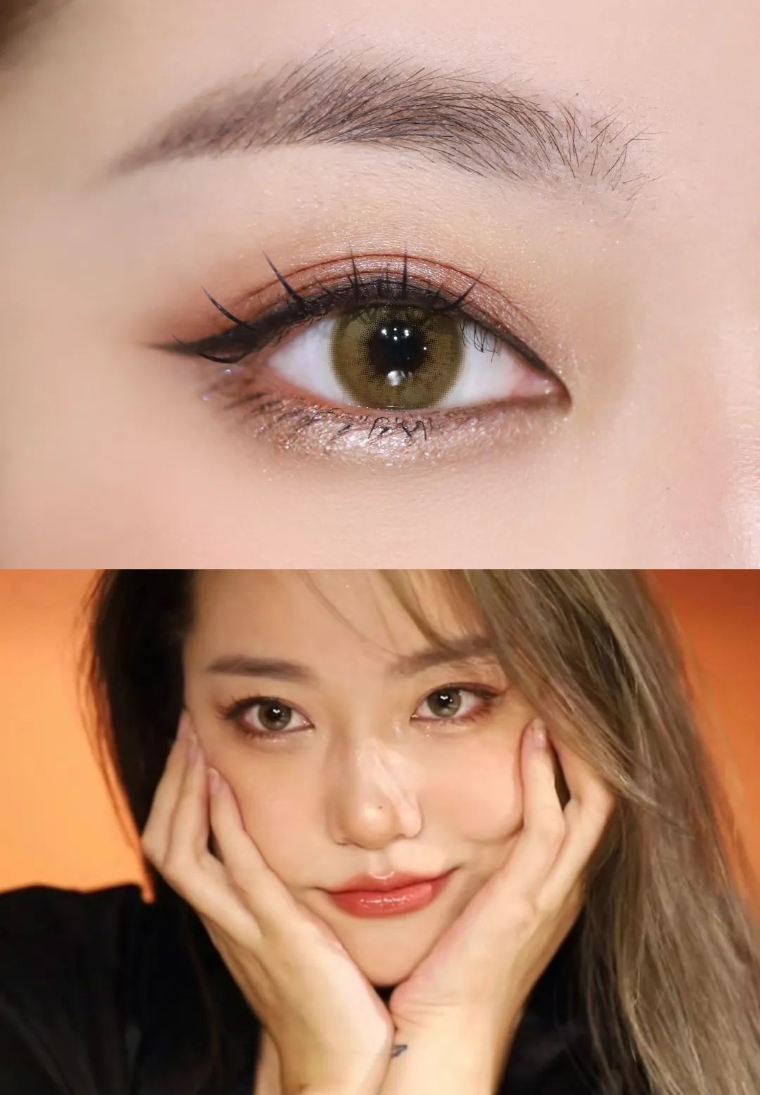 ✔️搭配美瞳款式👉大直径高光「日落金桔」