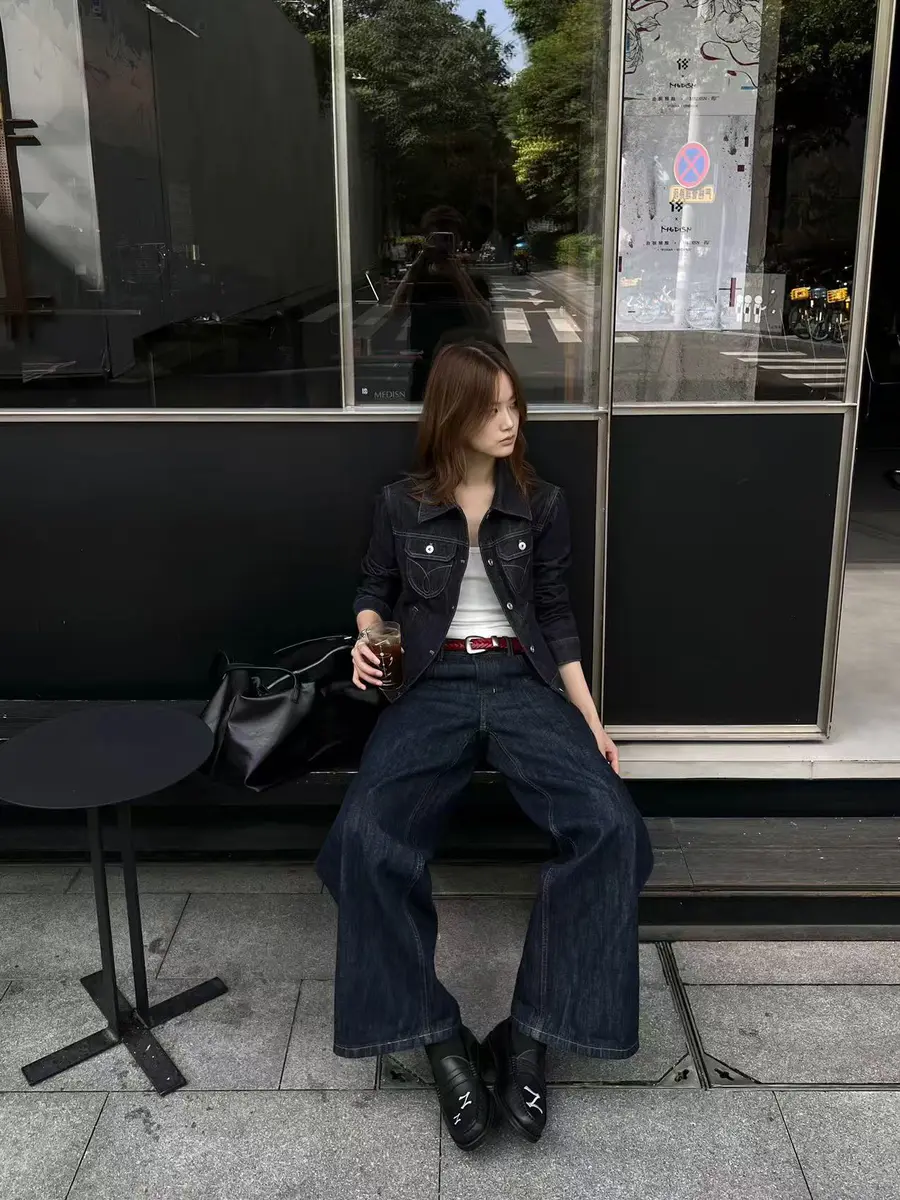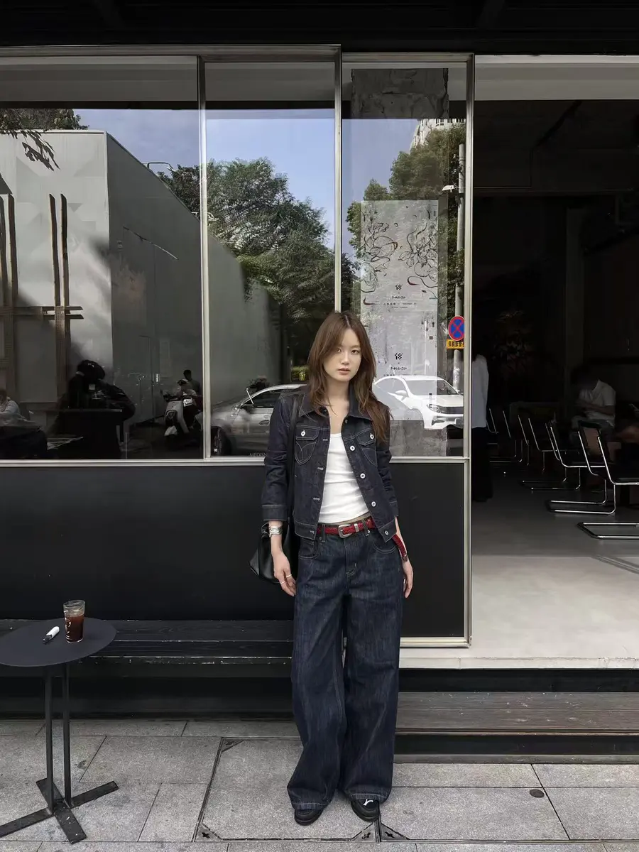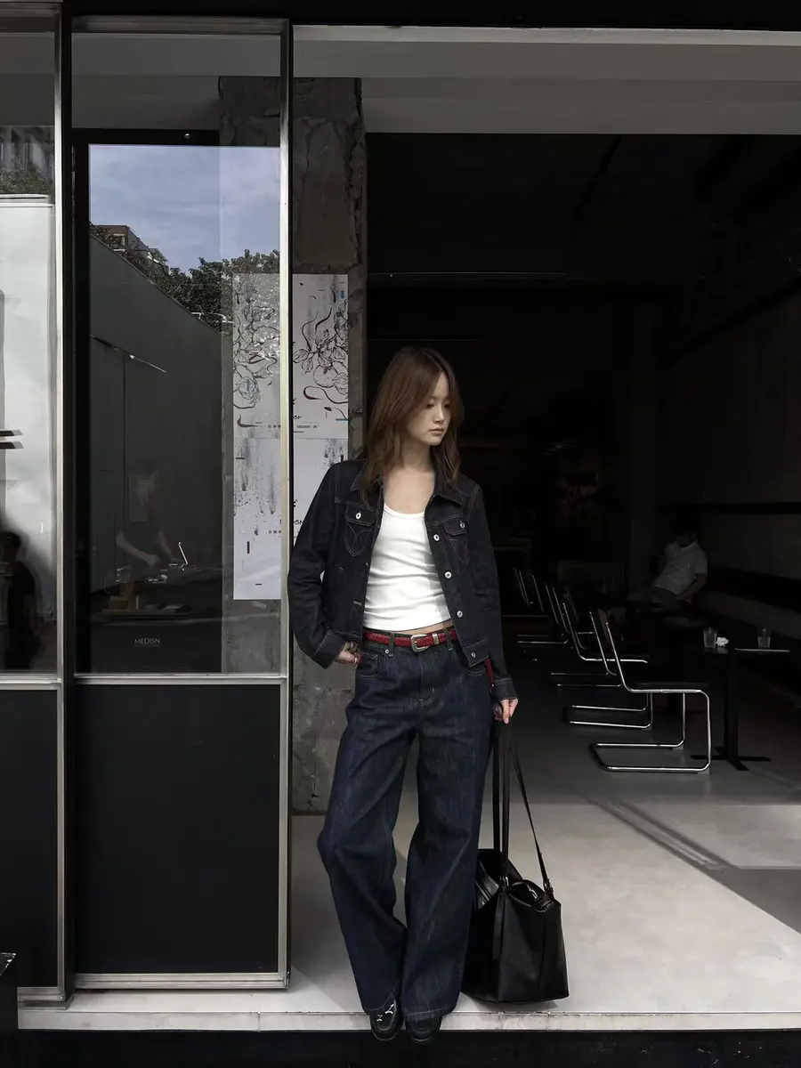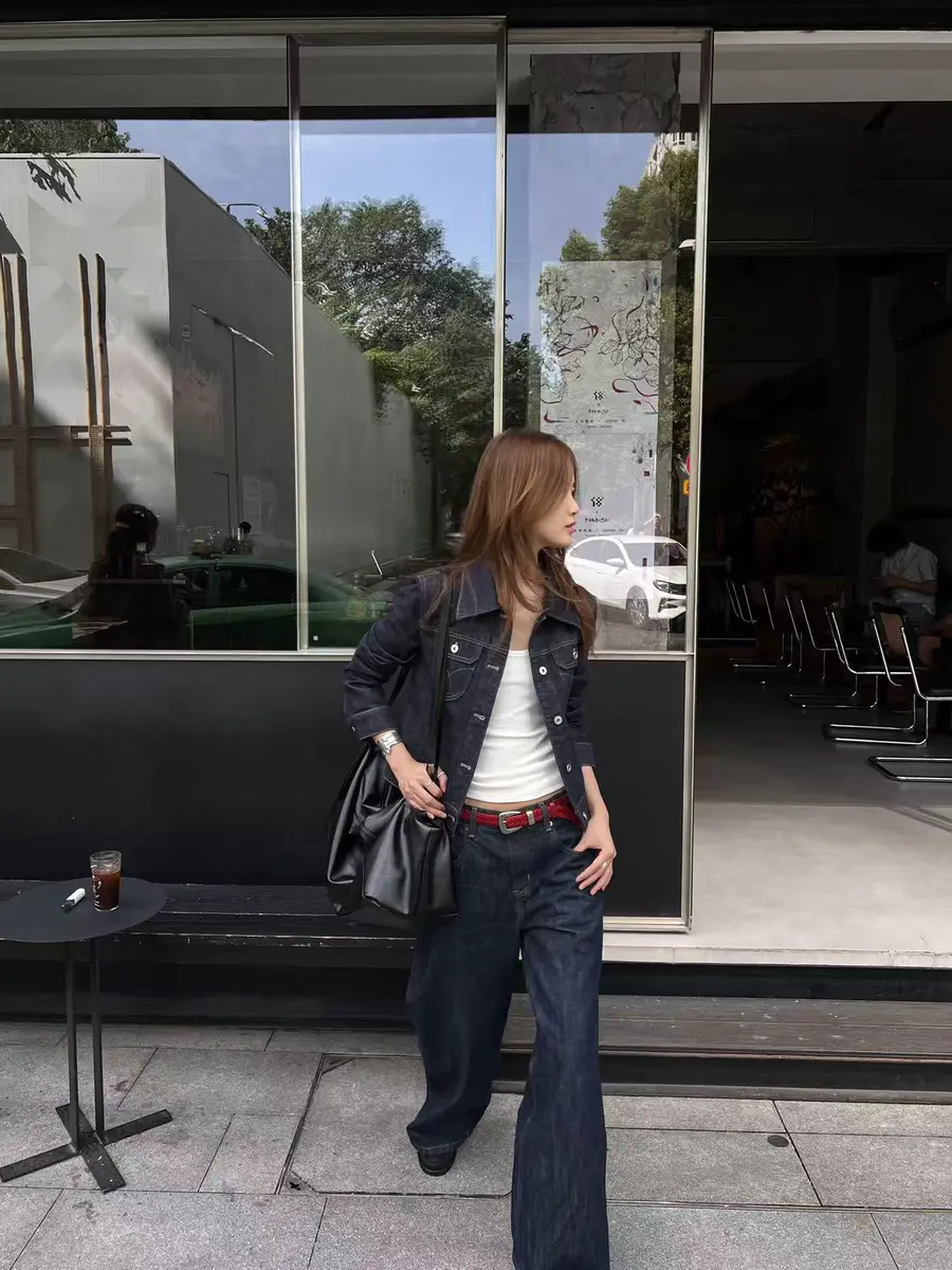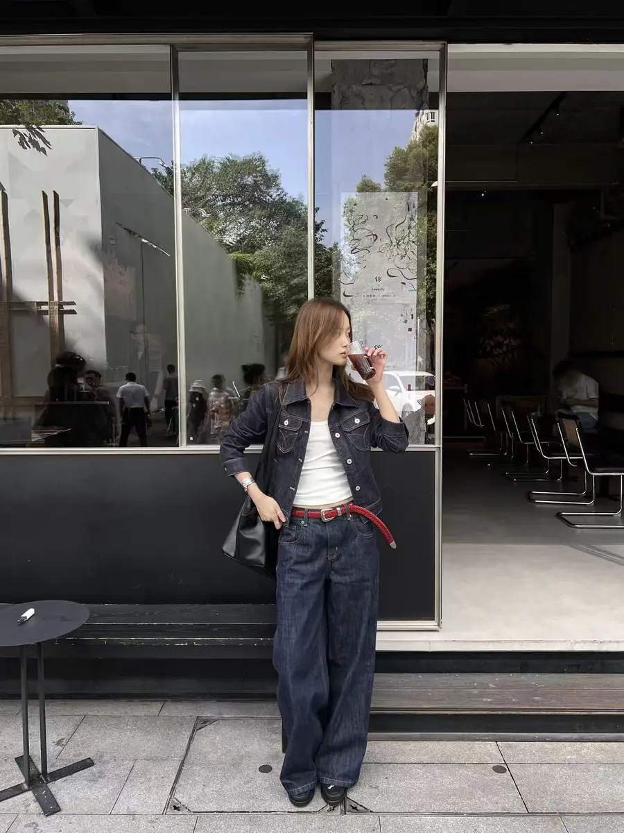 新品上身 |全牛仔搭配,红色腰带提亮,复古新潮。🌟