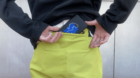 位于腰部最上方的后兜,可装载各个大尺寸的手机。