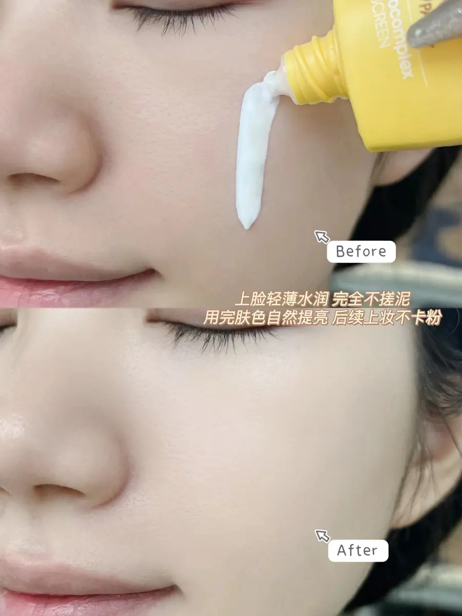 不黏,成膜也快,不闷痘,有提亮肤色效果