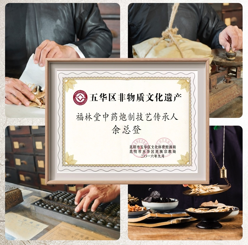 福林堂的创办人李玉卿,(公元1857年)在光华街创建福林堂药店,经过几代人的努力,展成为民国时期昆明最负盛名的中药店,以其独到药材,传承技艺,百年历史,获得国家“中华老字号”荣誉。