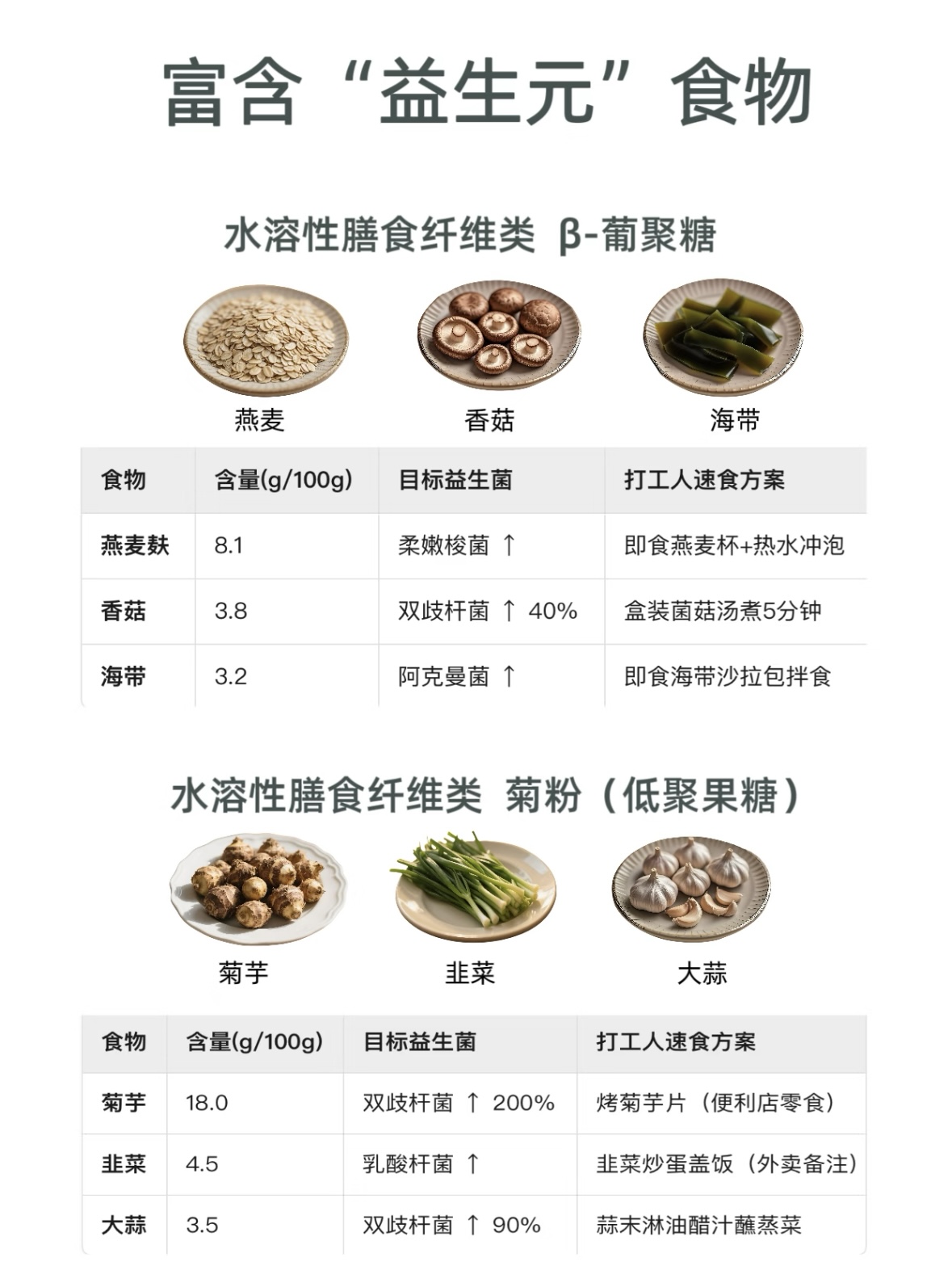 富含益生菌、益生元的食材
