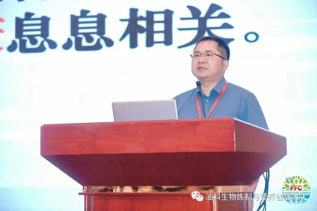 同时,汪勇教授作了题为《基于甘油二酯的营养健康食品专用油脂体系构建》的学术报告,主要介绍了功能油脂甘油二酯的生成背景、主要功效和理化特性、酶法制备及其在食品专用油脂应用情况,并同时介绍了科研团队概况。