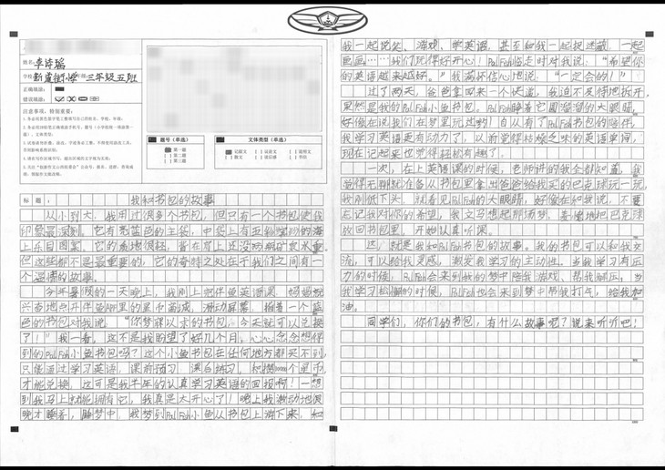 书包是每天陪在我身边的最熟悉的东西,但是以前真的没有特别留意过它,看到这个题目,一时间不知道该写什么。后来突然想到我有一个特殊的书包,是凭我自己努力学习英语兑换来的,这个书包很有意义,而且我的确很喜欢它,所以就写出了这篇作文。当然作文里也加入了想象的部分,通过写这篇作文,让我更加喜欢我的书包,更加坚定好好学习的信念了!