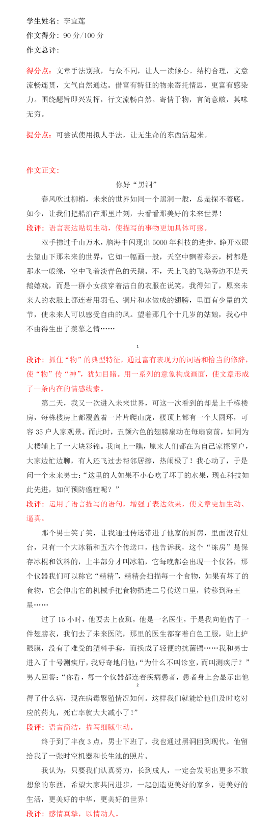 幻想话题的作文是孩子最喜欢的作文题材,可以在各类书中体验把自己带进角色中的美妙时刻,淋漓畅快。只有兴趣才能带动动力,感谢辅导老师和平台的帮助,给孩子一个展现的空间,增强自信心,迎接更加广阔的未来。