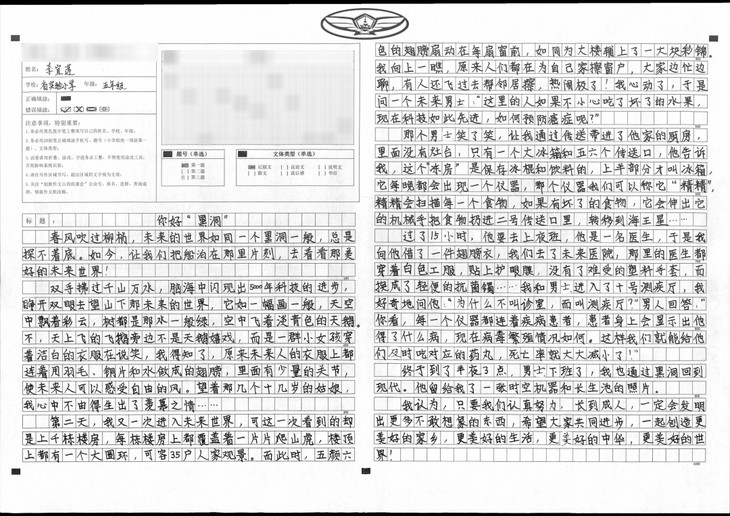 探索未来的话题,是我比较感兴趣的类别,可以不受任何拘束,天马行空地在大脑里游走,把不敢想的,没有做过的事情通过自己的笔写出来,也许有那么一天,等我长大成人,拿起这篇作文,才发现原来幻想的东西真的可以变成现实!