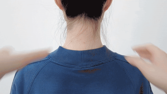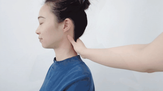 5、双手指腹自耳后,轻轻按压至双肩,重复3次,放松肩颈。