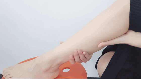 2、双手握住小腿两侧,用力按压,做三组,每组20下;