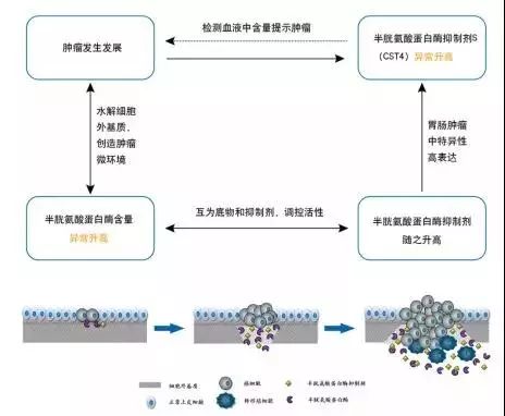 CST4是一种分泌型蛋白,参与细胞增殖的信号通路,在肿瘤的生长、侵袭中起重要作用。它的水平升高提示了肿瘤可能在生长、浸润和转移。