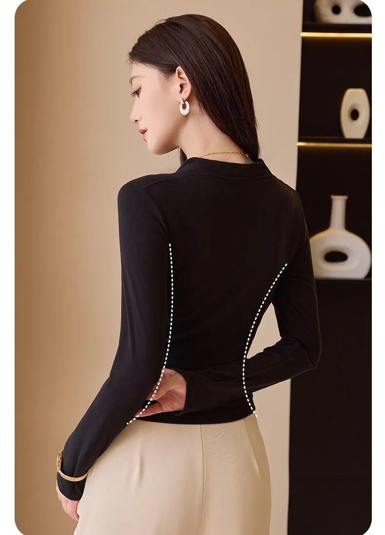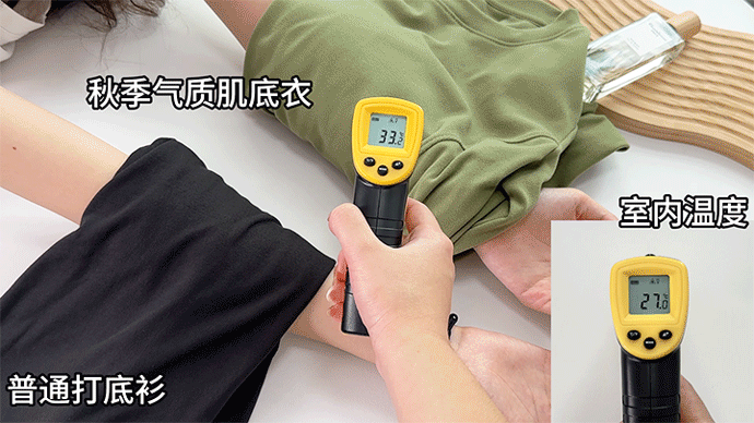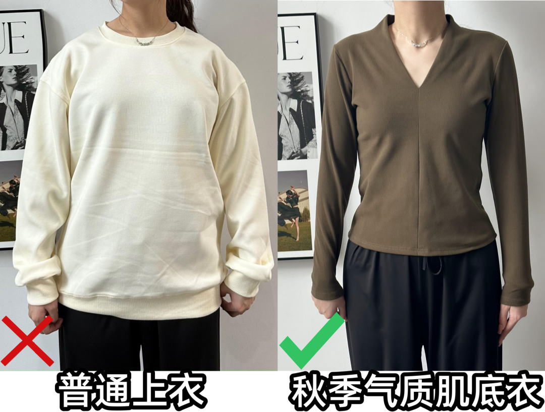 作为贴身穿的衣服,最害怕就是面料健康与舒适度问题。如果面料品质不好、比较粗糙,穿起来很容易扎人,引起皮肤问题~贝姿旋这款肌底衣丝毫不用担心,是可以让你直接穿着睡觉的一款!它的面料凭实力圈粉!选用双面绒面料,顺滑蓬松又保暖。奶油慕斯般亲肤细腻,上身特别舒服,完全不会有扎肉的感觉。rua起来的手感更是让人爱不释手,越rua越上瘾!内外双面磨毛形成空气锁温层,比一般打底衫能更好的锁住人体热量。让暖意“罩住”全身,即使在寒冷的秋冬也能保持温暖。实打实的保暖效果!拿测温仪测试,温度和普通打底衫相比差6℃:面料垂坠感很好,是那种戳人心窝子的“软的刚刚好”。还有特别添加的氨纶,让肌底衣具有chao强的回弹性。抗皱性也很好!哪怕使劲揉搓,再次摊开也能恢复原状。关键是:面料不含甲醛、荧光剂等有害物质,更闻不到一点异味。不伤皮肤!贴身穿再适合不过,敏感肤质的姐妹也可放心穿👌🏻重点!这不是普通的面料,整件衣服的抗jun指数货真价实7A级别!可以有效抑制常见的三大致病jun(大肠杆jun、金黄色葡萄球jun、白色念珠jun)。专业机构检测报告为证👇洗涤150次后依然有抗jun效果。试问有多少打底衫能做到这一点呢?简直就是打底衫界的天花板了啊!而且,每一件衣服的吊牌上都附带一张7A抗jun标签。我们来做个小实验,看↓ 蒸汽“呼”的一下就透出来了,像是会呼吸一样~还能将人体所产生的湿气及时排出,达到排湿锁温的双重效果。哪怕冬天各种叠穿也不会有潮湿感,时刻保持干爽,别提有多舒服了。薄厚适中的面料,既有恰到好处的温度,又不会闷热难受~除了面料质感nice,这款肌底衣的版型也让我特心动~针对不同身材做了实穿的2种领型款式,简约时髦又可以修饰身材短板。经典大气的小圆领设计,百搭不挑人,上身穿敲显气质的~视觉上有收缩腰线的效果,穿上ta轻松塑造迷人曲线~V领这个小心机大家都懂,修饰脸型又能拉长颈线,达到显瘦显脸小的效果。和圆领不同,领口中缝做了拼接,可以避免领子洗后外翻!将修身把握的刚刚好,不会紧贴肌肤,又能很好地展示女人的曲线美~正肩+腰线收紧,削薄肩背遮住肚子肉肉,勾勒出迷人线条。长度根据大部分女性身材定制,没有长款压身高,塞进裙装/裤装不会显臃肿。
