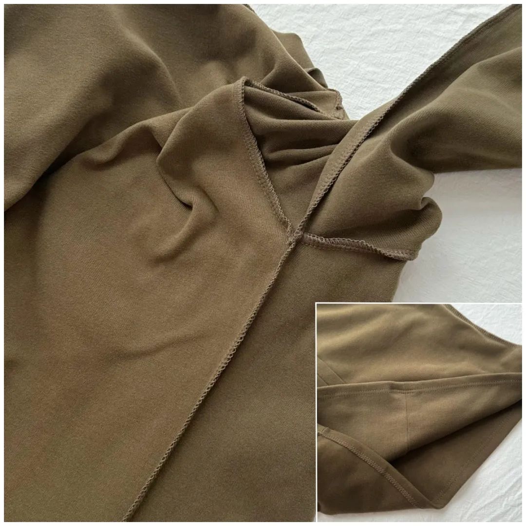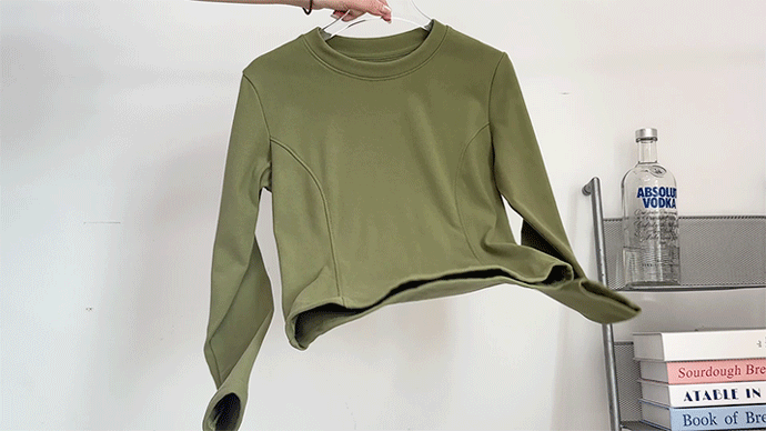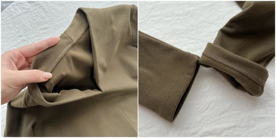 袖子长度也刚好没过掌心,袖线自然垂落时显得手臂纤长~整体简约又独具个性的版型,不管是春秋季的单穿,还是当做内搭都可!面料和版型真的完美到无可挑剔,现在咱们来看看做工细节吧。缝线处走线整齐,不会像劣质衣物那样,穿上总感觉刺挠难受!领口、袖口处都做了加固锁边工艺,不易卷边、脱线,实穿性非常强。