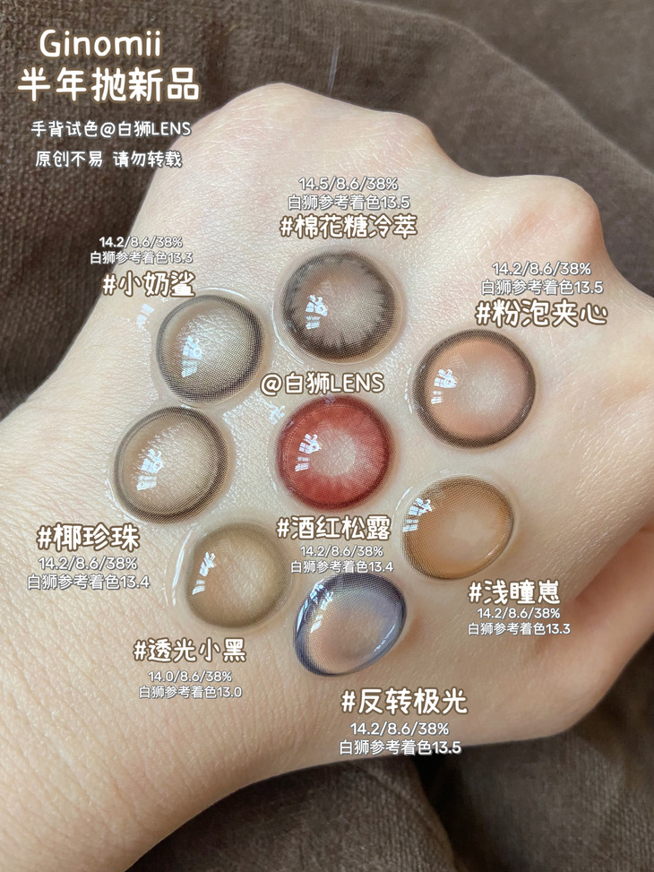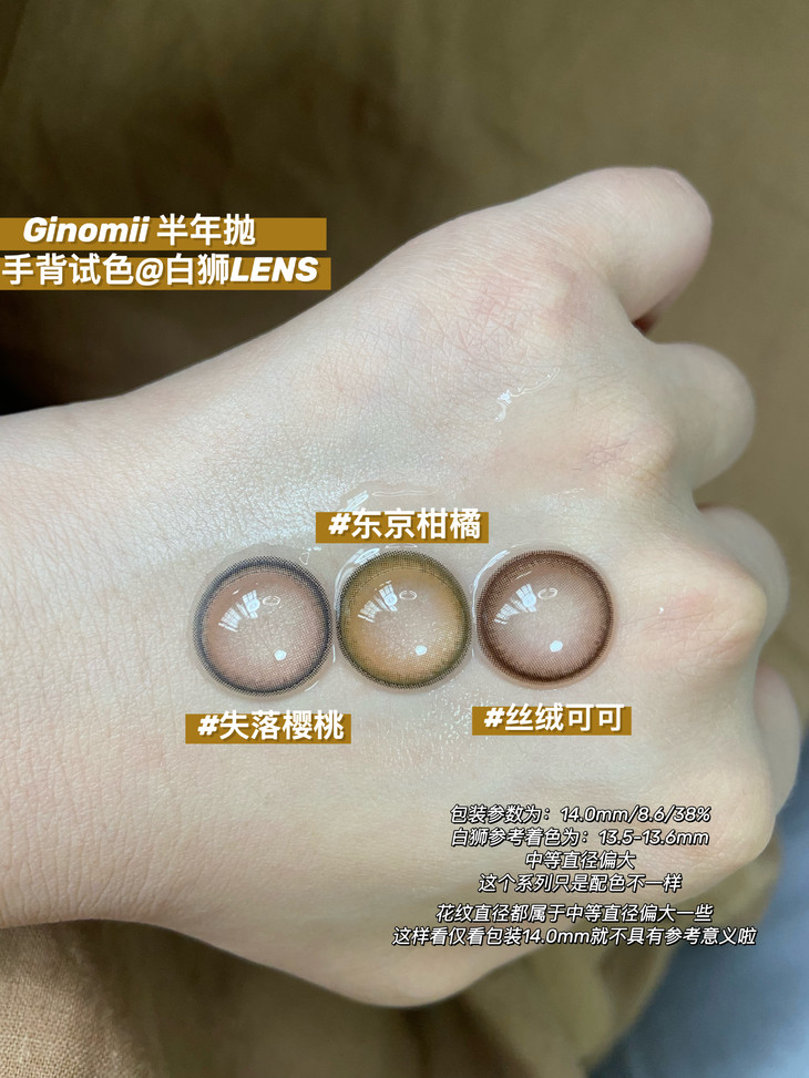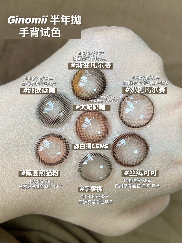 Ginomii半年抛款式如下, 大家看图上标注的白狮参考着色直径就好啦: