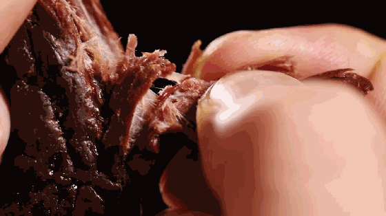 轻轻一撕,紧致的肉丝经络分明丝丝清晰,天然的肉香味儿瞬间充满鼻腔,还未入口,诚实的唾液腺已开始工作了……