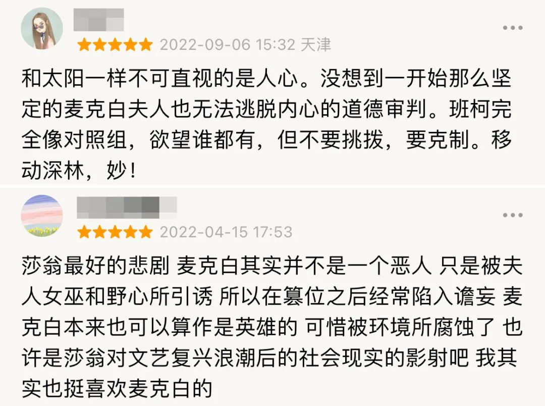 麦克白被旁人蛊惑,良知被野心泯灭,这些都是我们可能会遇到的问题。