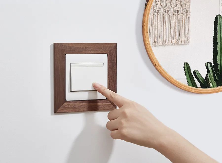 比如说融入“木”元素,给开关加一个木质框,