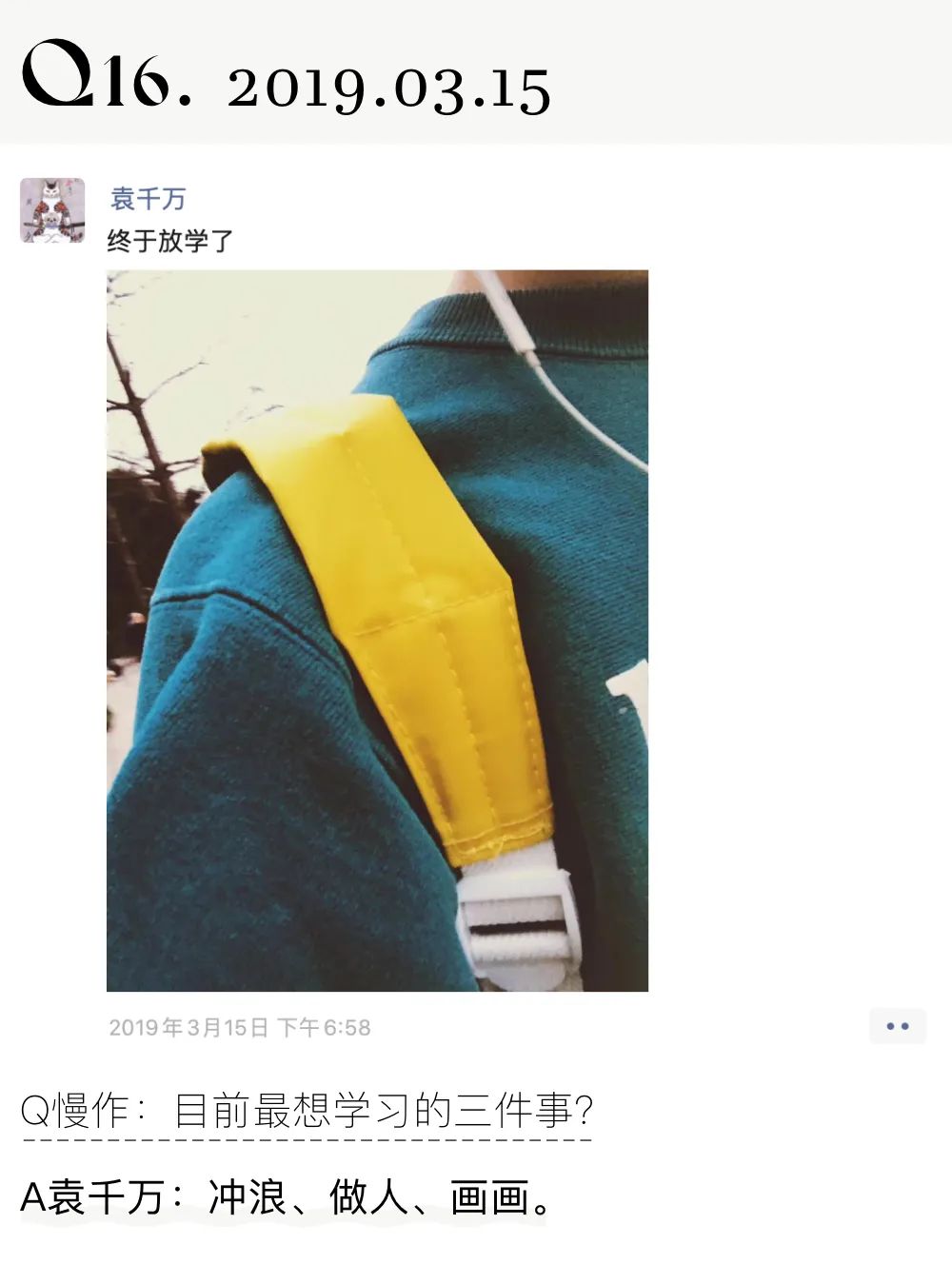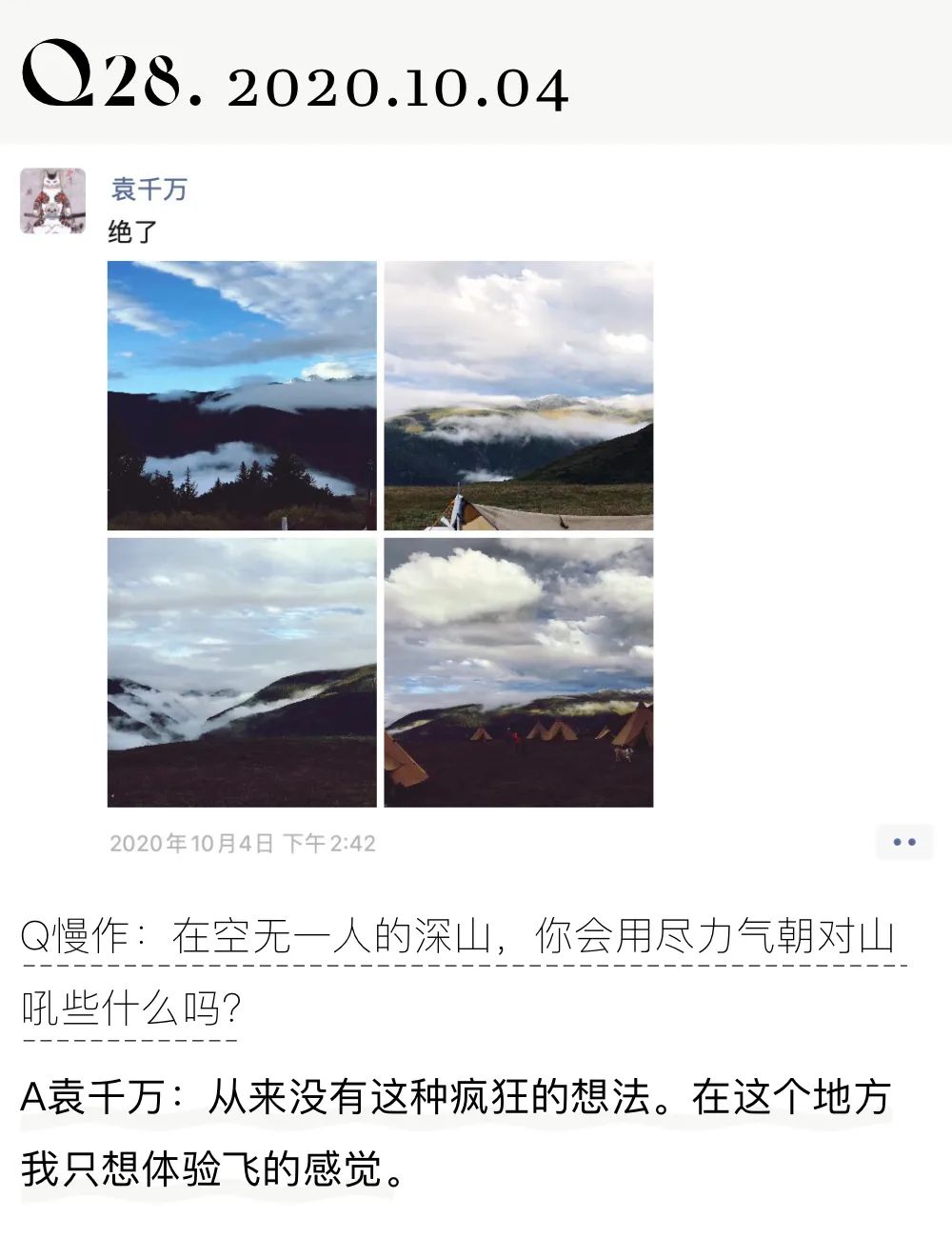 通常采访一个人之前,我会翻翻对方的朋友圈,便能大概理出想问的问题。但袁千万不一样。即便我已经翻到了2016年,最后也只能总结出:袁千万是个不好概括的人。