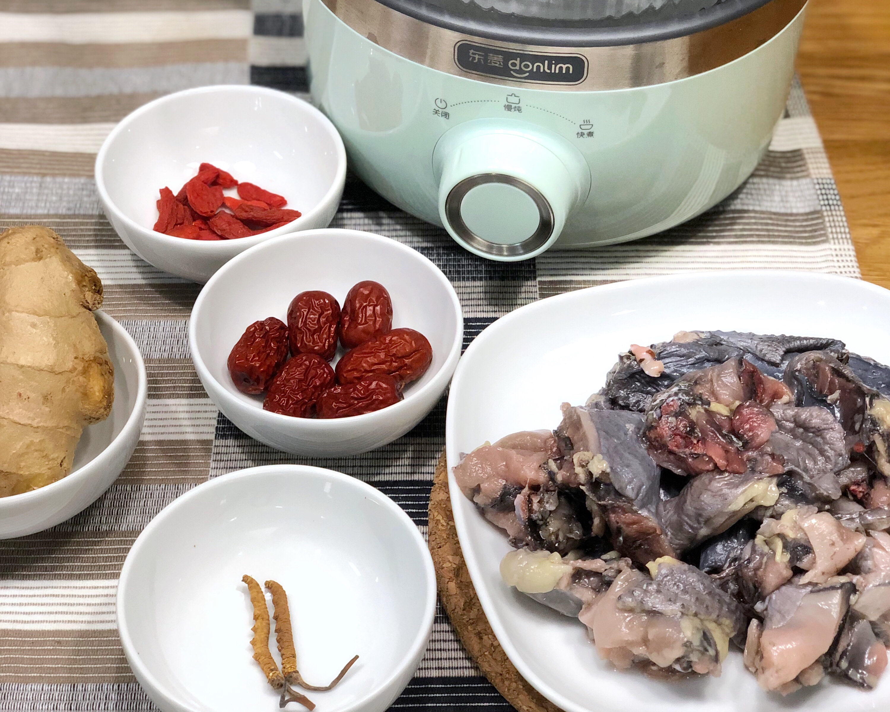 乌鸡、红枣、姜片放入洗干净的东菱养生锅内,加清水至慢炖的最高刻度线;